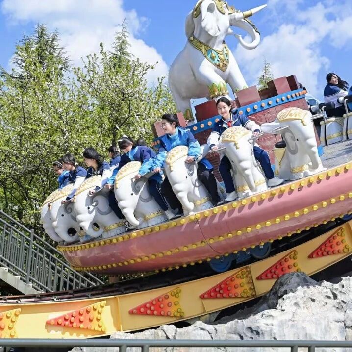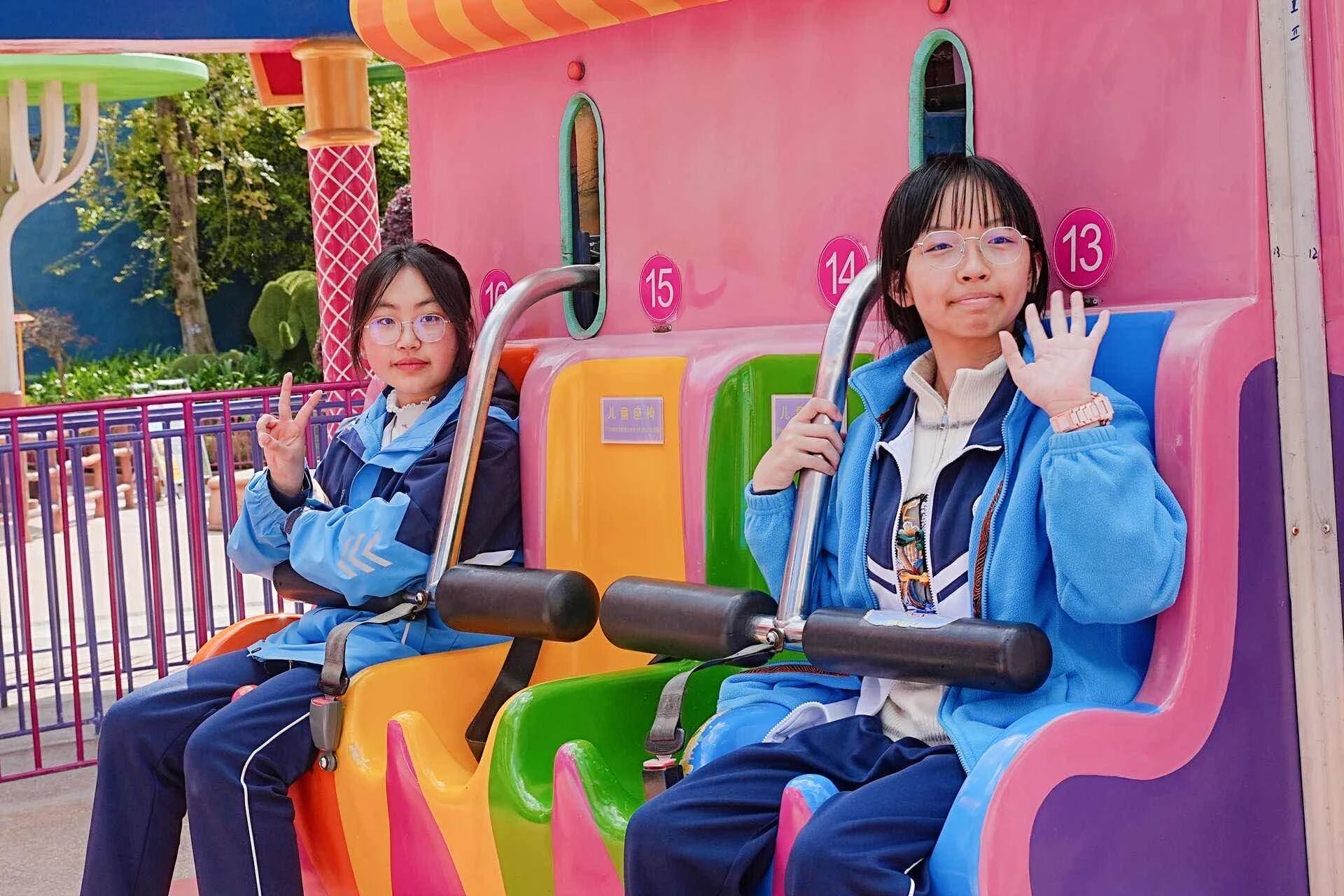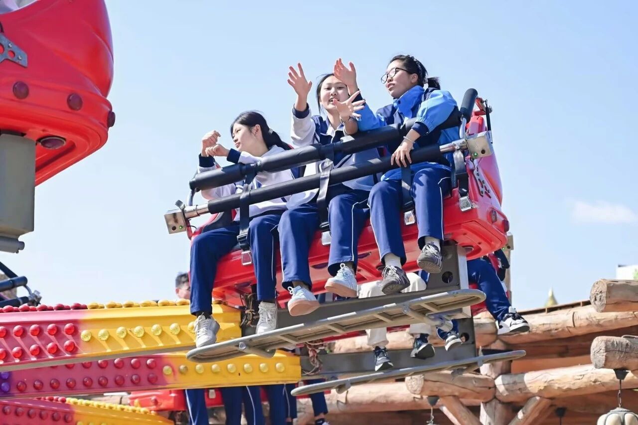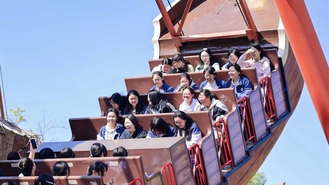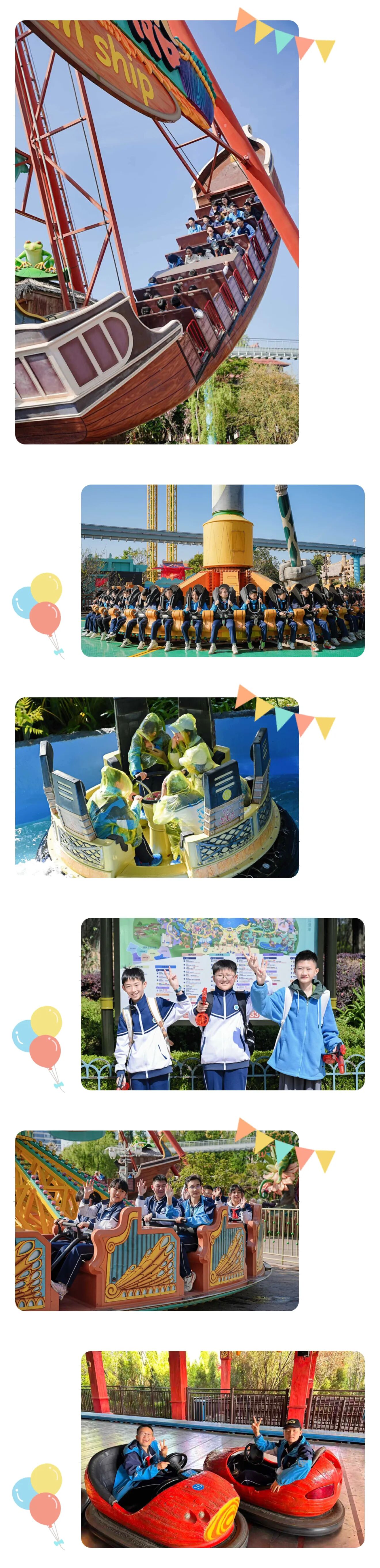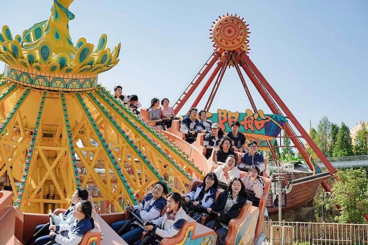 自由体验环节成为师生释放活力、增进情谊的美好时刻。同学们三五结伴,穿梭于七彩云南欢乐世界七大主题区域,在过山车、虎跳峡、飓风飞椅等惊险项目中感受速度与激情,尖叫声与欢笑声交织成春日最鲜活的旋律;登上滇池眼摩天轮,俯瞰园区全景与滇池风光,春日湖光山色尽收眼底,让身心在高空尽情放松