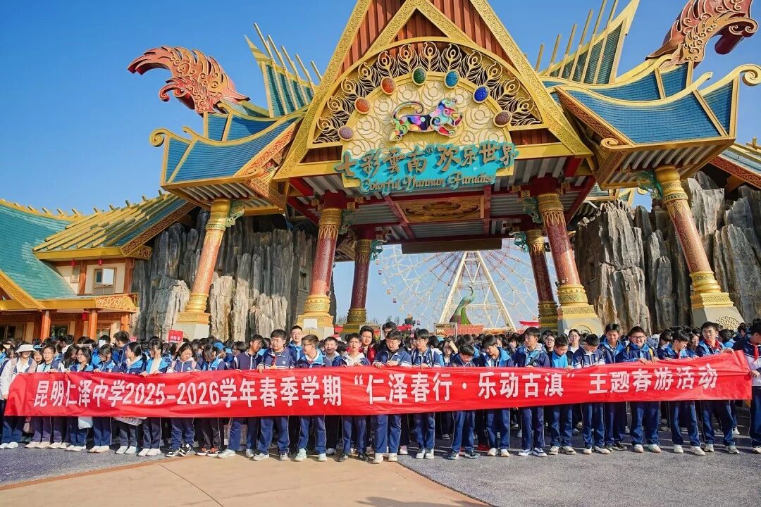 三月暖风和煦,春城生机盎然。为丰富课余生活、拓展实践视野,3月18日至19日,昆明仁泽中学组织初中部及高一高二年级全体师生,奔赴七彩云南欢乐世界开展“仁泽春行·乐动古滇”校外主题春游活动。此次活动以“自然为课堂、人文为底蕴”,将趣味体验、知识探究与师生情谊相融,在春日暖阳中开启一场兼具活力与深度的成长之旅。