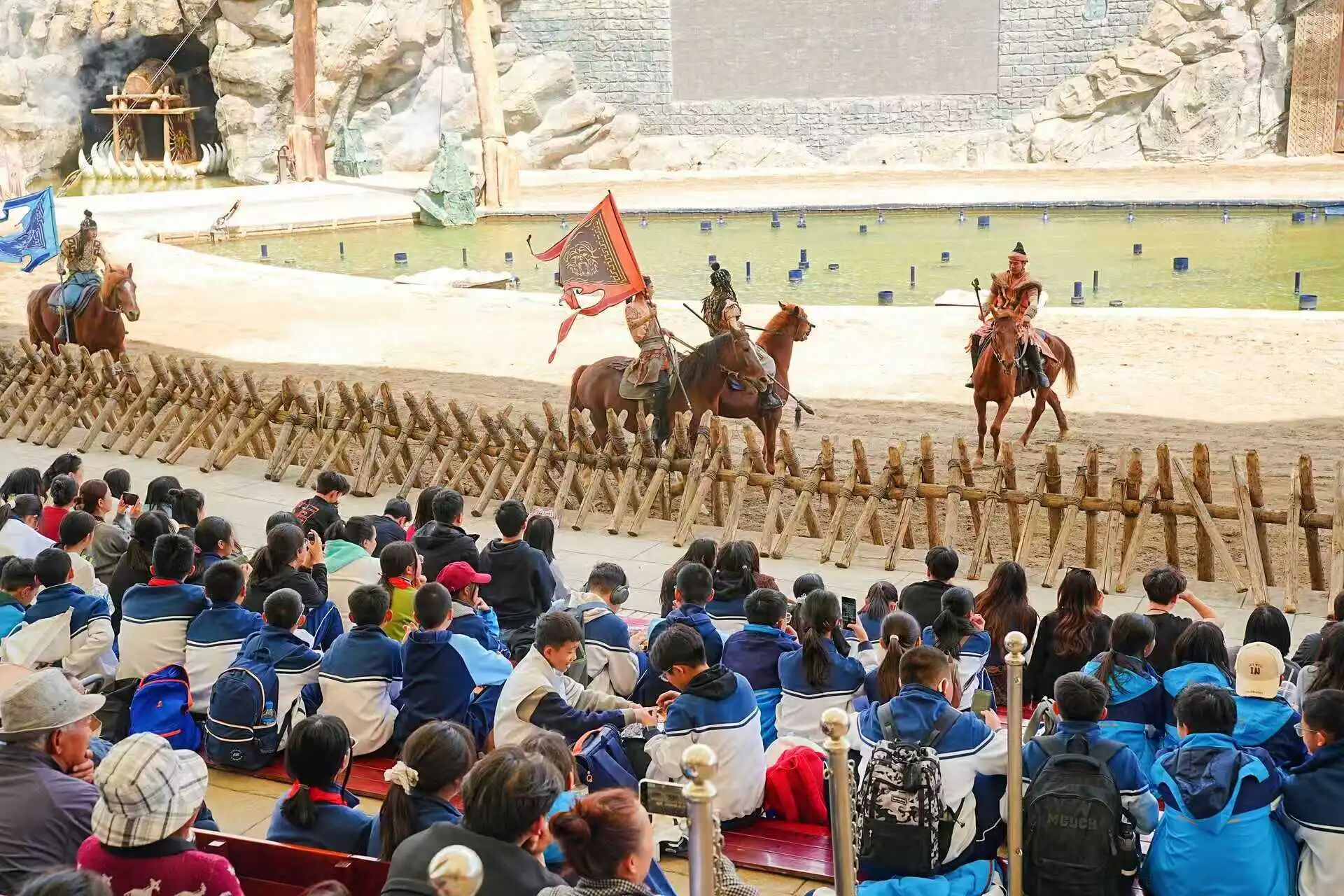 此次春游不仅有趣味体验,更有深度的文化浸润与知识探究。师生们先后走进飞翔影院、民族大剧院、实景剧场,开启一场场沉浸式文化之旅: