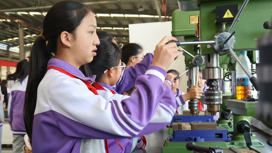 “日常生活中的洗衣粉、消毒酒精等产品,制造设备长什么样?”“从传统老式机床到智能化数控设备,经历了怎样的迭代升级?”活动中,园区工程师为同学们带来生动讲解,逐步揭开工业生产的神秘面纱。同学们近距离观摩各式先进设备与荣誉展品,在新旧设备对比中直观体会技术革新的力量,深刻认识到每一台设备、每一项成果都与日常生活紧密相连,更助力家乡发展、服务国家建设。