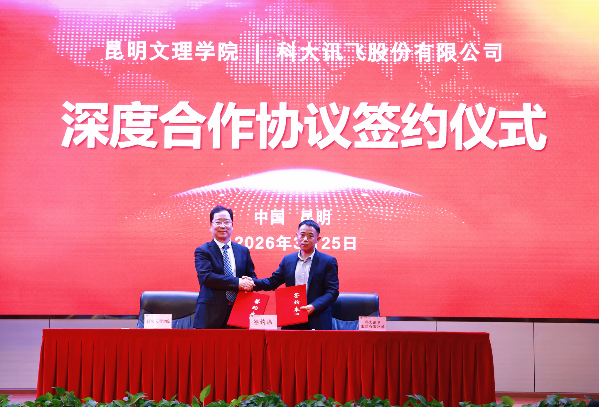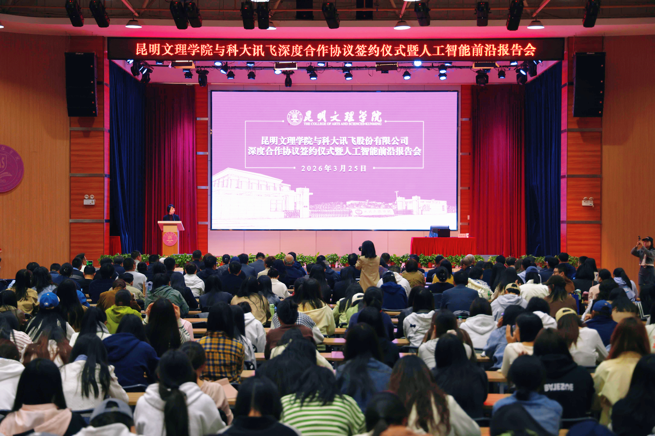 3月25日,昆明文理学院与科大讯飞股份有限公司深度合作协议签约仪式暨人工智能前沿报告会在学校杨林校区举行。