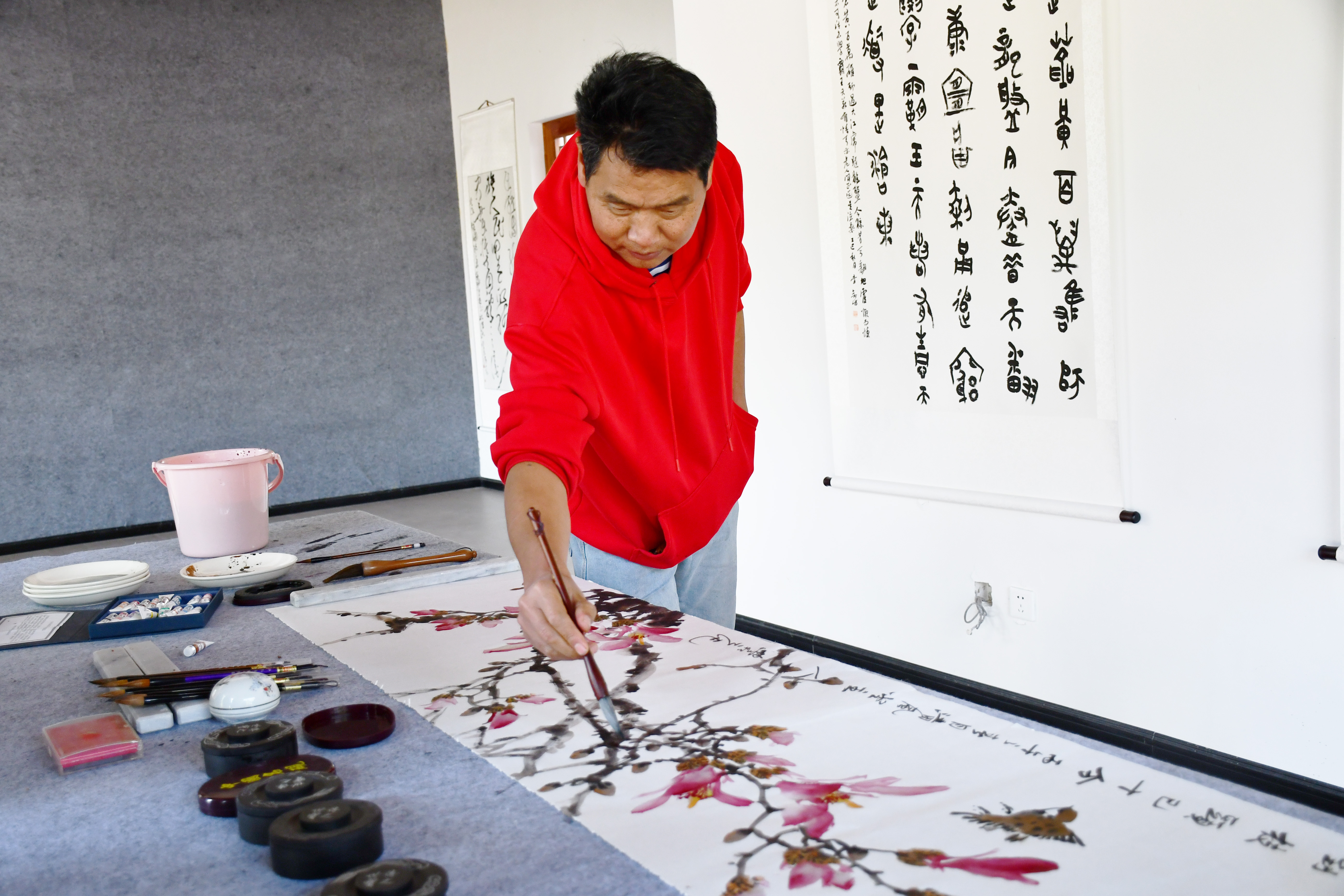 “在这里,推窗就是湖光山色,笔墨间全是自然灵气,茈碧湖的风、湿地的景、白族的韵味,全都能直接入画,洱源县文学艺术中心真正给我们每一个画家一个静下心、沉下心创作的家园。”县美术协会主席段学松感慨道。