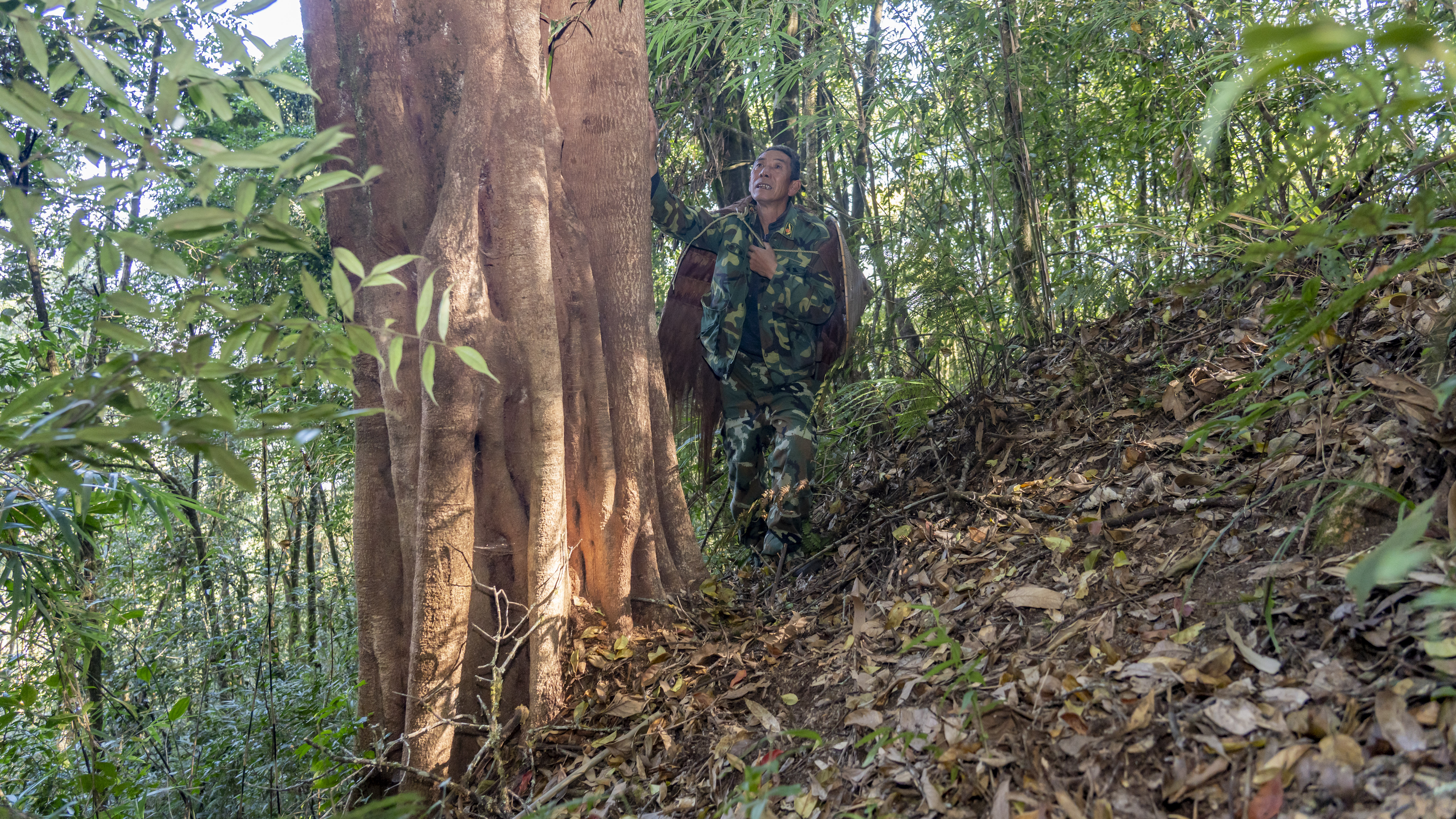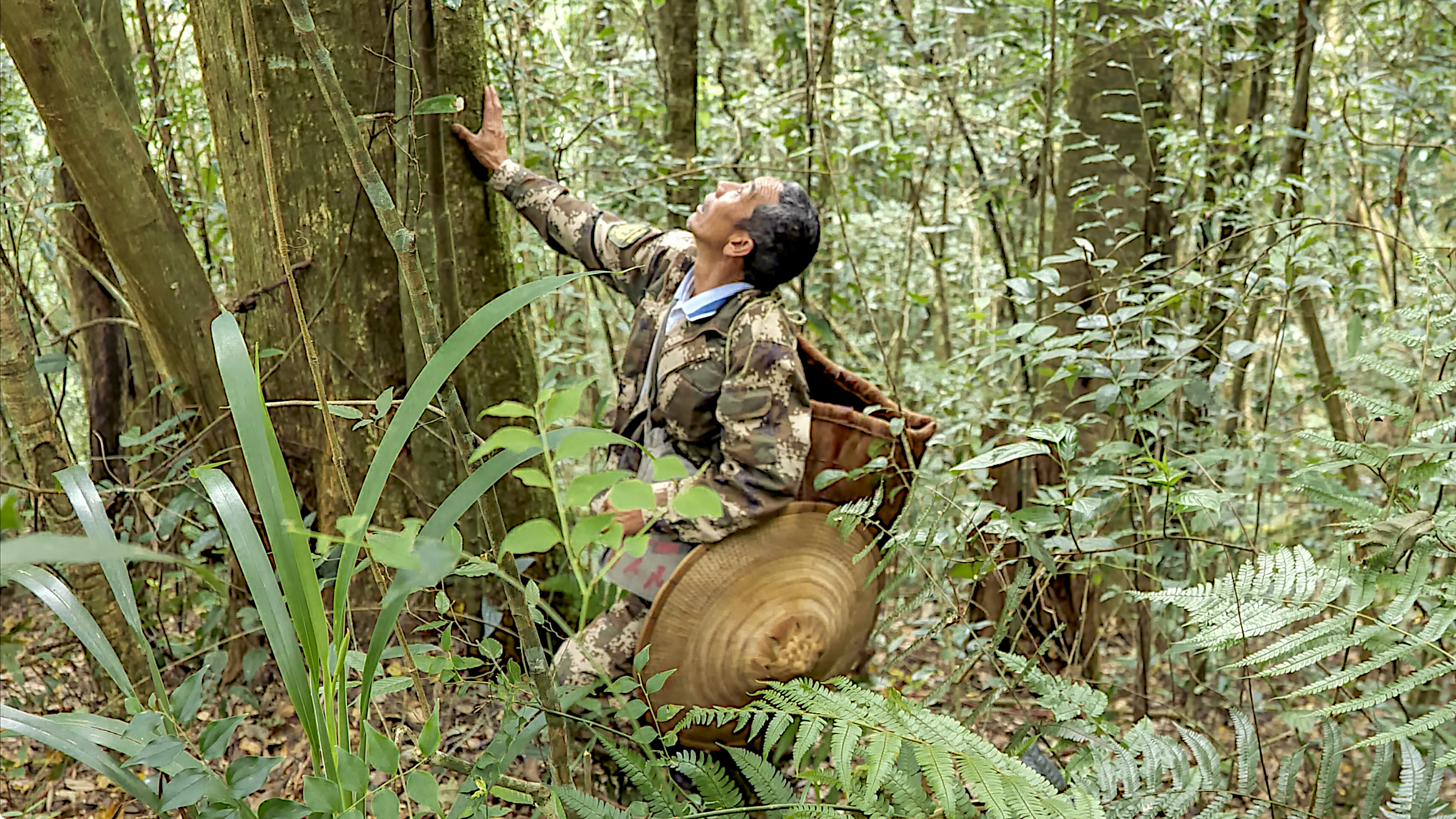 有一回巡山,他发现一棵四季常绿的大树与平日所见不同,立刻上报,日夜守护直到专家赶来——那是珍稀的百日青,国家二级保护植物。此后每次巡山,他都要专程去看看,野草茂密的山地,硬是被他踩出一条小径。