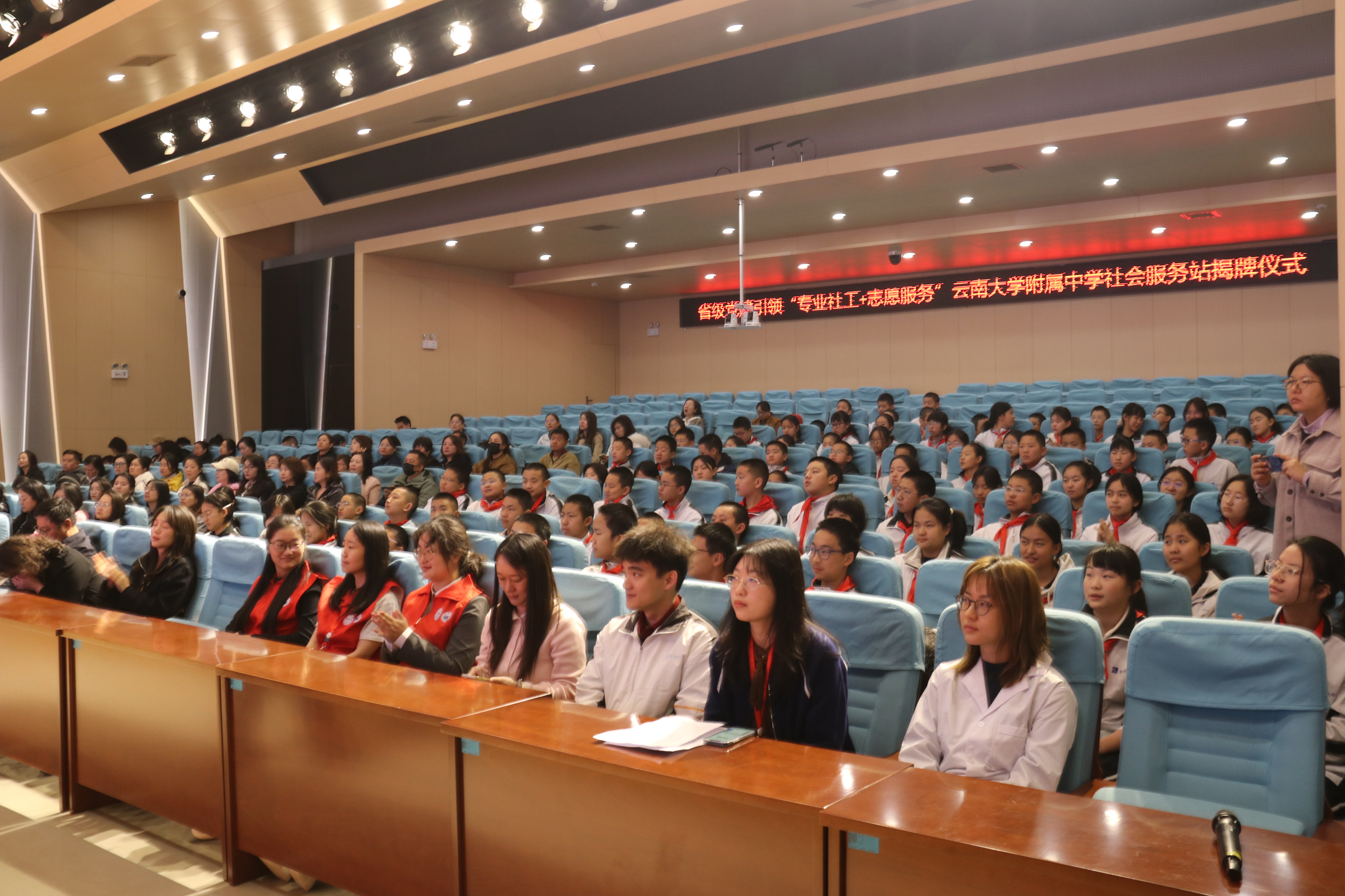 在全场嘉宾的共同见证下,与会领导共同为云大附中社会工作服务站授牌。一时间,掌声雷动。