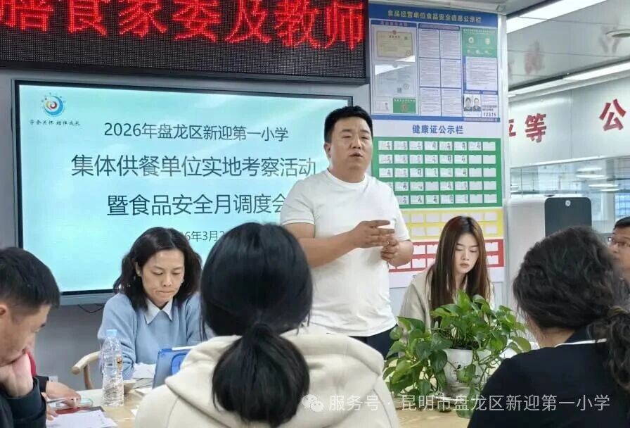 为进一步筑牢校园食品安全防线、推进健康学校建设重点任务落地,3月26日,盘龙区新迎第一小学由党支部书记、校长带队,组织学校一部、二部食品安全总监、食品安全员,并联合膳食家长委员会代表、家长及教师代表,走进云南供销云菜餐饮服务有限公司,开展集体供餐单位实地检查暨食品安全月调度现场会,从源头到餐桌,对学生用餐全流程进行“沉浸式”监督。
