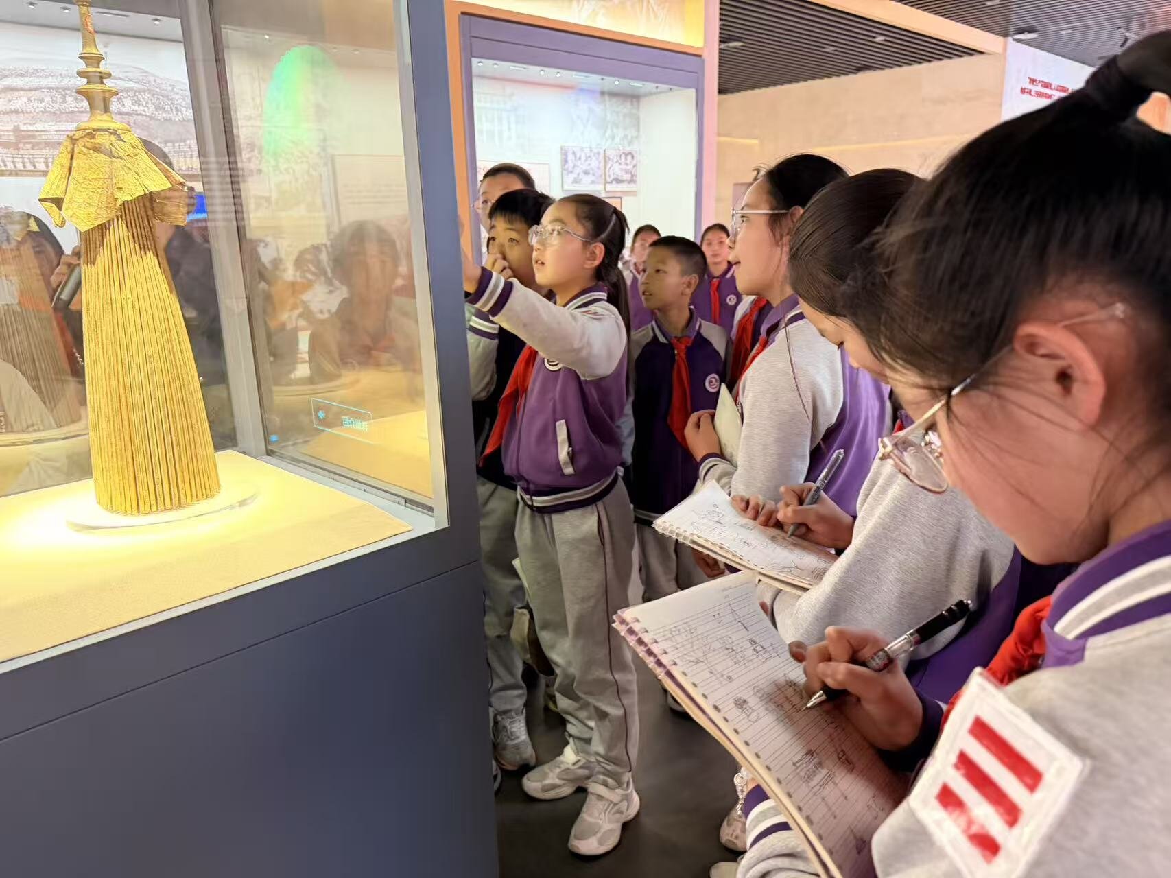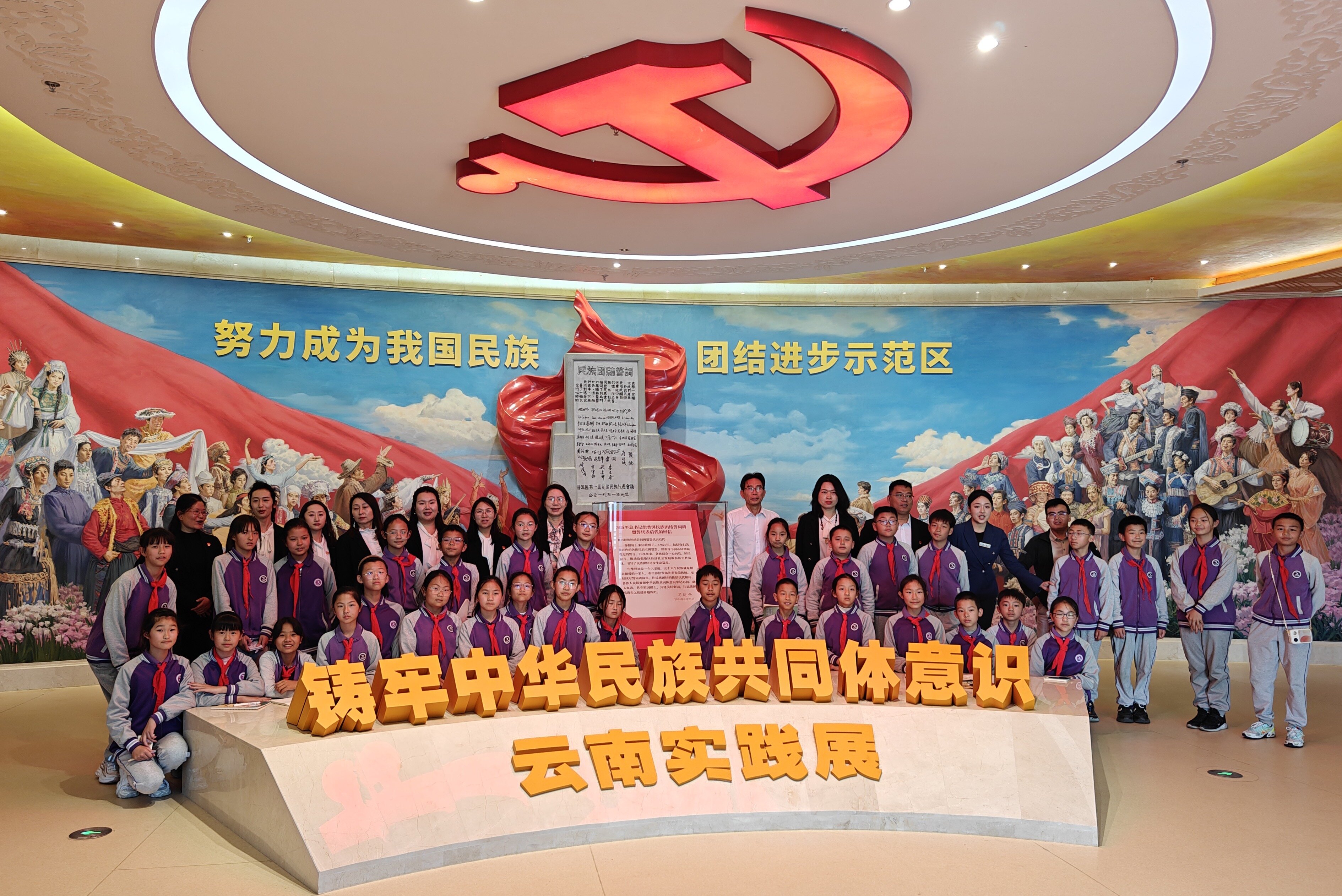 课堂之外,老师带领同学们走进云南民族博物馆,以“新中国民族团结第一碑”——普洱民族团结誓词碑1:1复刻展区为核心,开展场馆教学。同学们通过集体诵读碑文、聆听讲解、互动探究,将课堂上的理解,延伸至对云南民族团结进步生动实践的感悟中。校内小课堂的理论认知与社会大课堂的具身体验相互印证,使“中华民族共同体意识”从抽象概念转化为可感可知的精神认同。