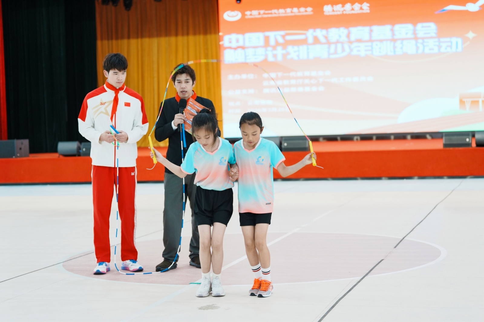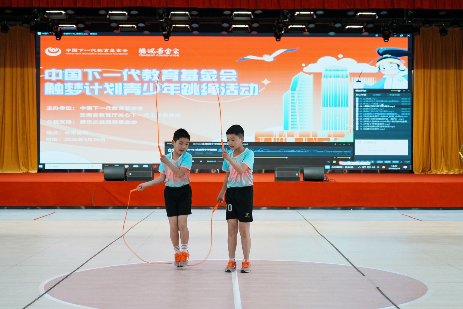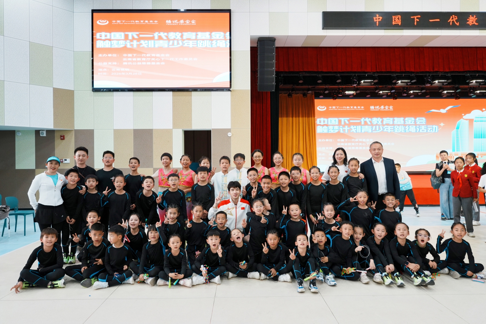 2026年3月28日下午,由中国下一代教育基金会和云南省教育厅关心下一代工作委员会联合主办,腾讯公益慈善基金会公益支持的“中国下一代教育基金会触梦计划青少年跳绳活动”,在昆明市盘龙区金康园小学教育集团金瑞校区举办。中国下一代教育基金会副理事长兼秘书长吴涓、云南省教育厅关心下一代工作委员会常务副主任杨丽、云南省教育厅关心下一代工作委员会副主任兼秘书长孙云宾等相关领导,以及来自盘龙区金康园小学、盘龙区新迎第二小学和官渡区方旺小学等当地15所学校的校长、老师和420余名学生代表参加本次活动。