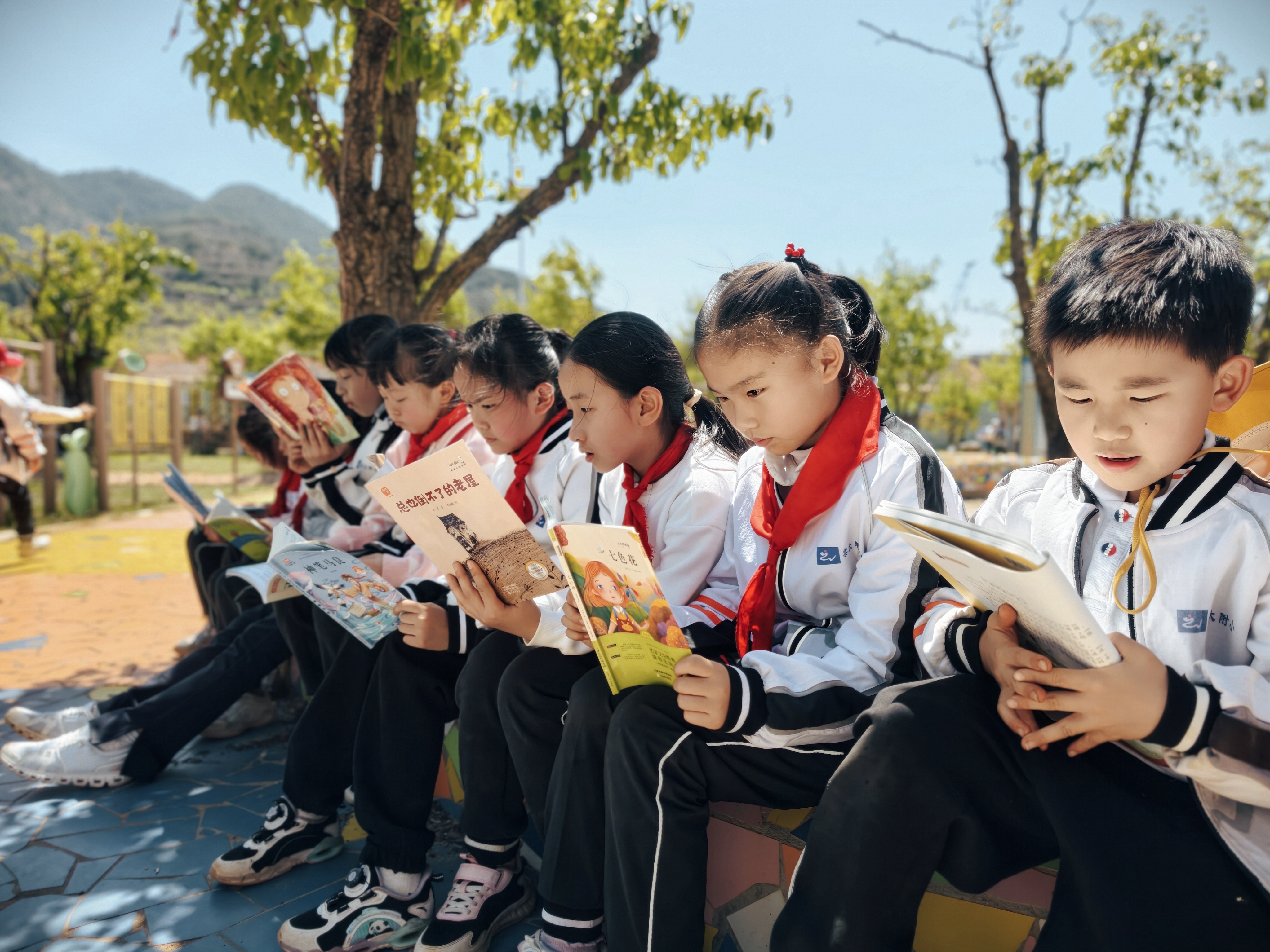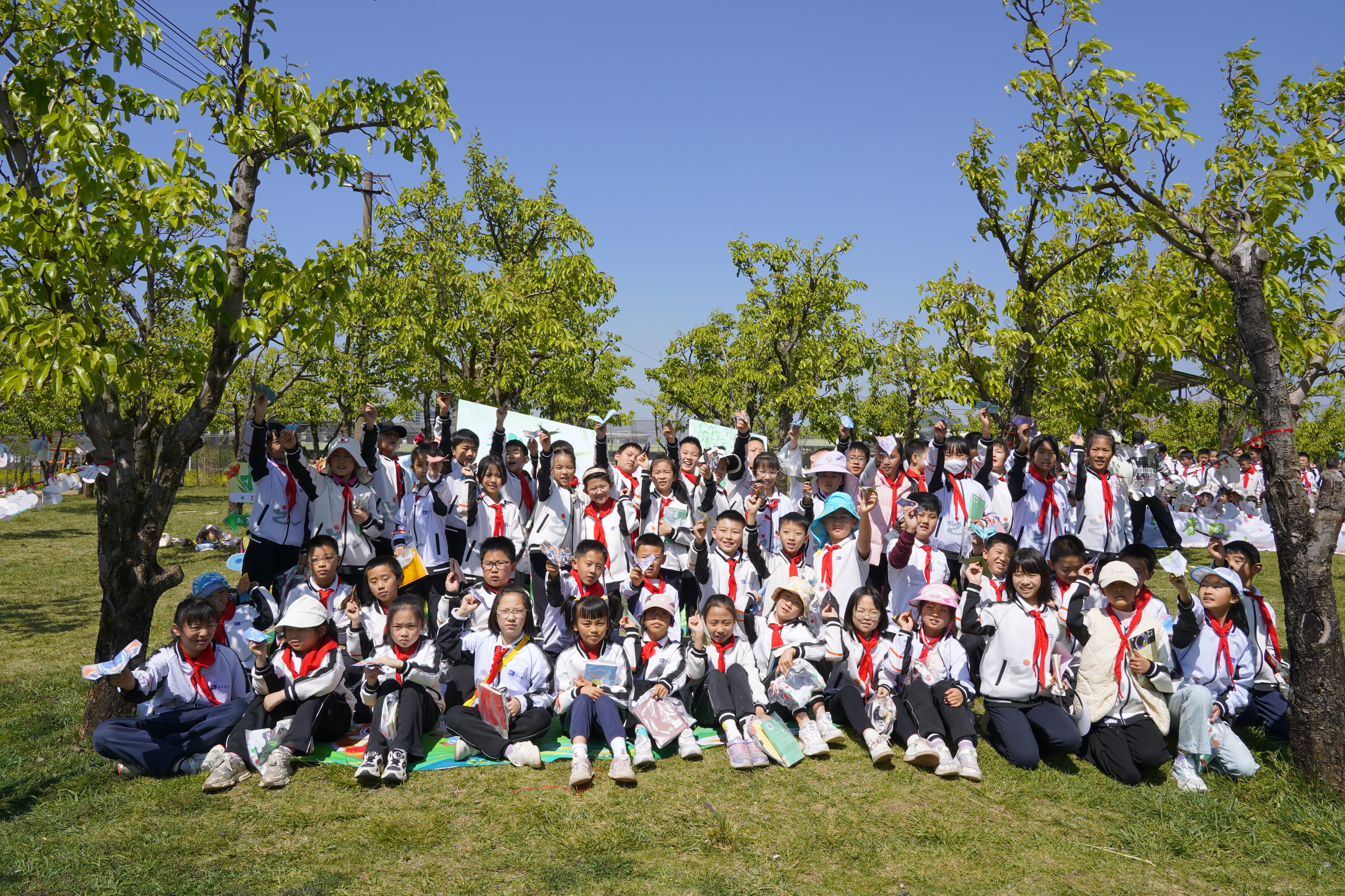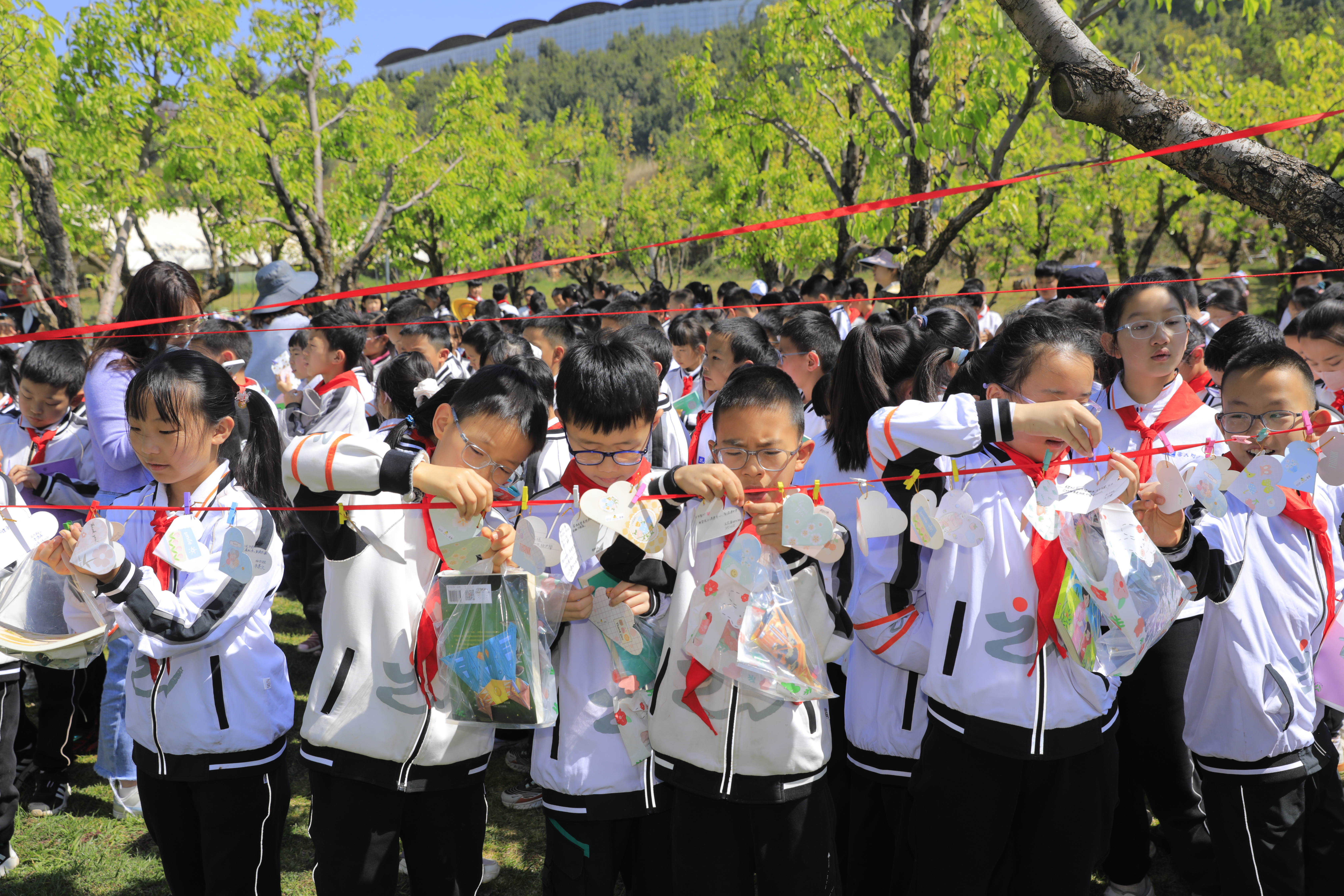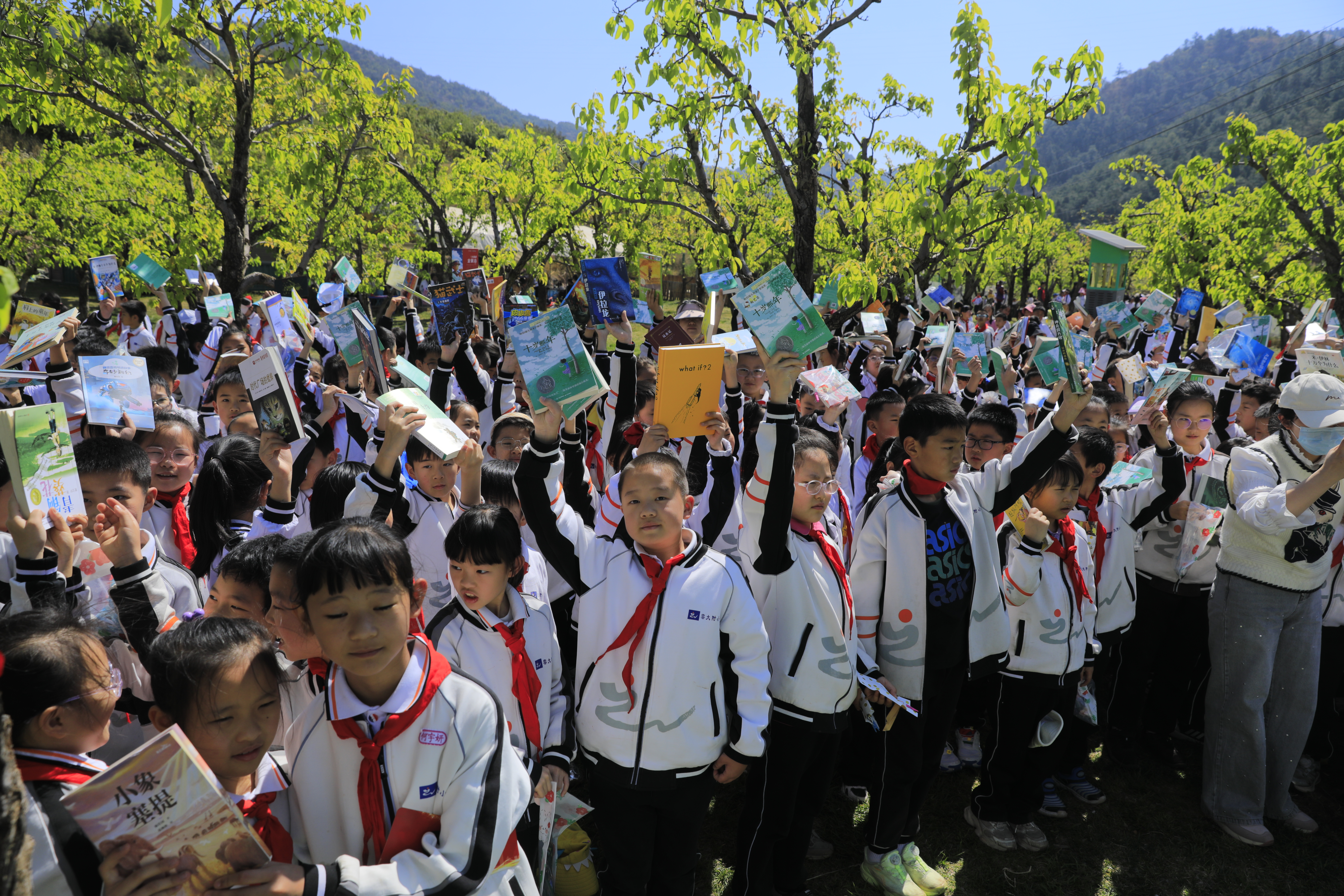 春风拂过万溪冲的千亩梨园,花瓣轻落,书香肆意弥漫。3月27日,云大附中小学部(以下简称:云大附小)将读书节启动仪式搬到了呈贡区万溪冲的五谷良田农场,在烂漫春光里,为全体学生开启了一场以“开卷沐春风,书香伴成长”为主题的阅读之旅。