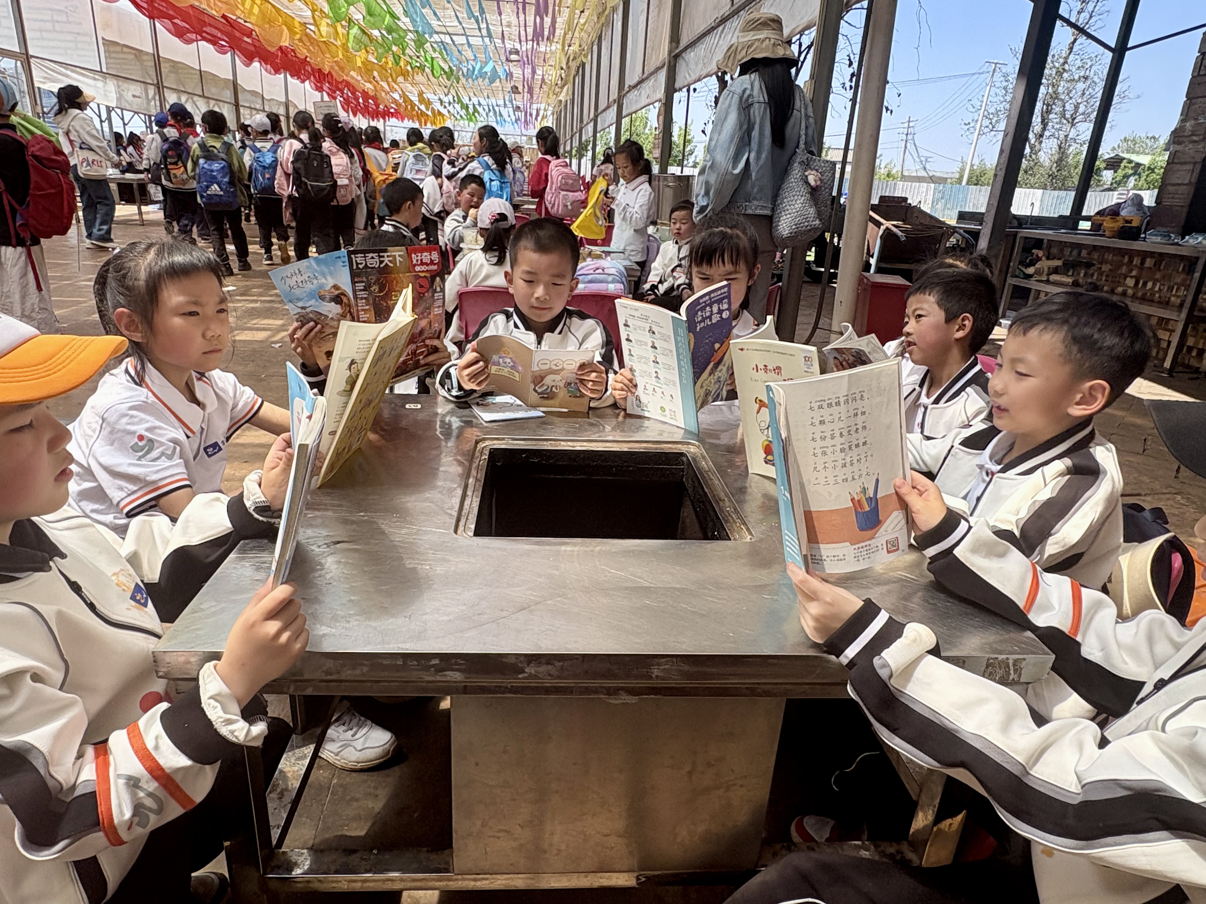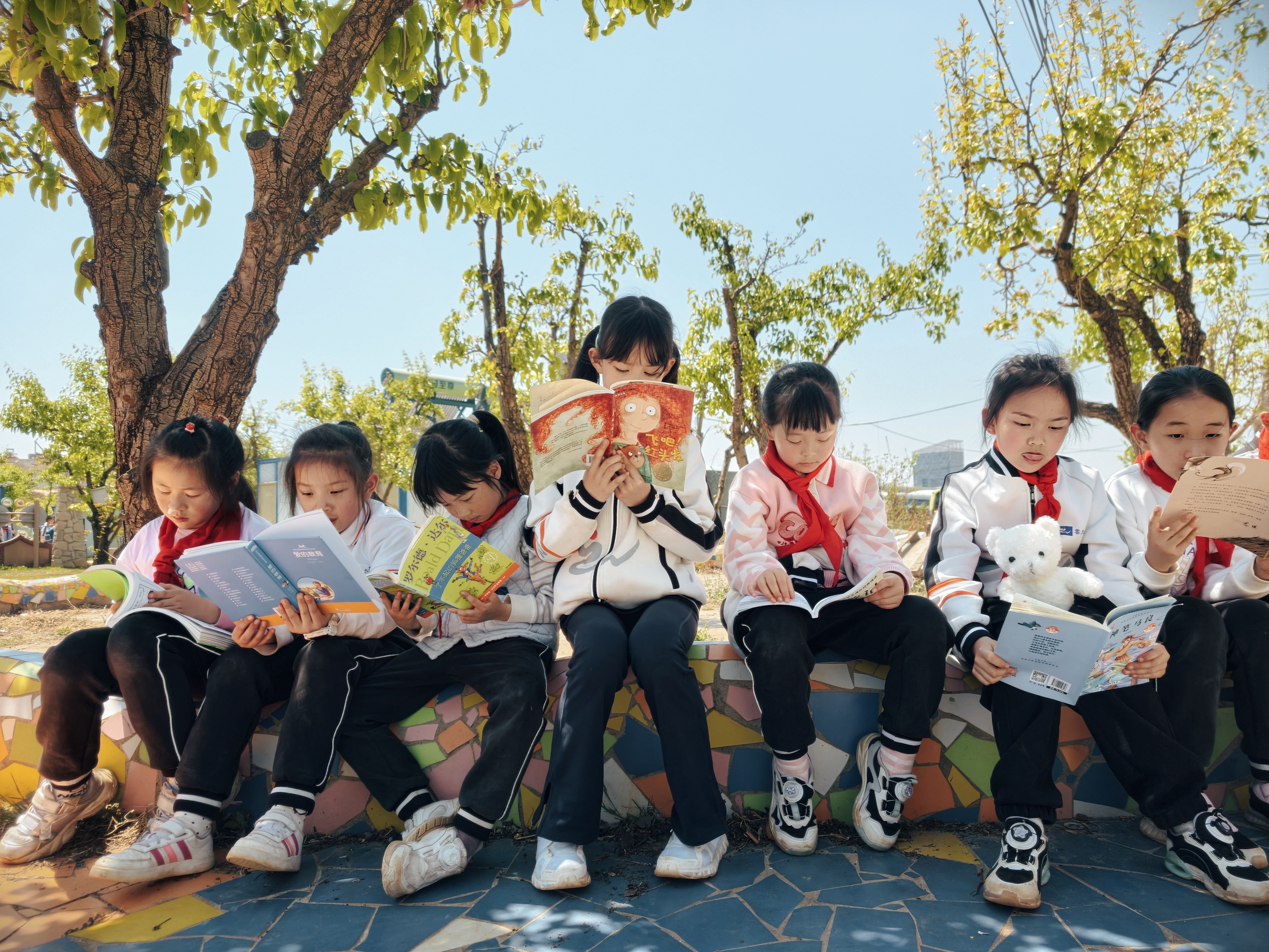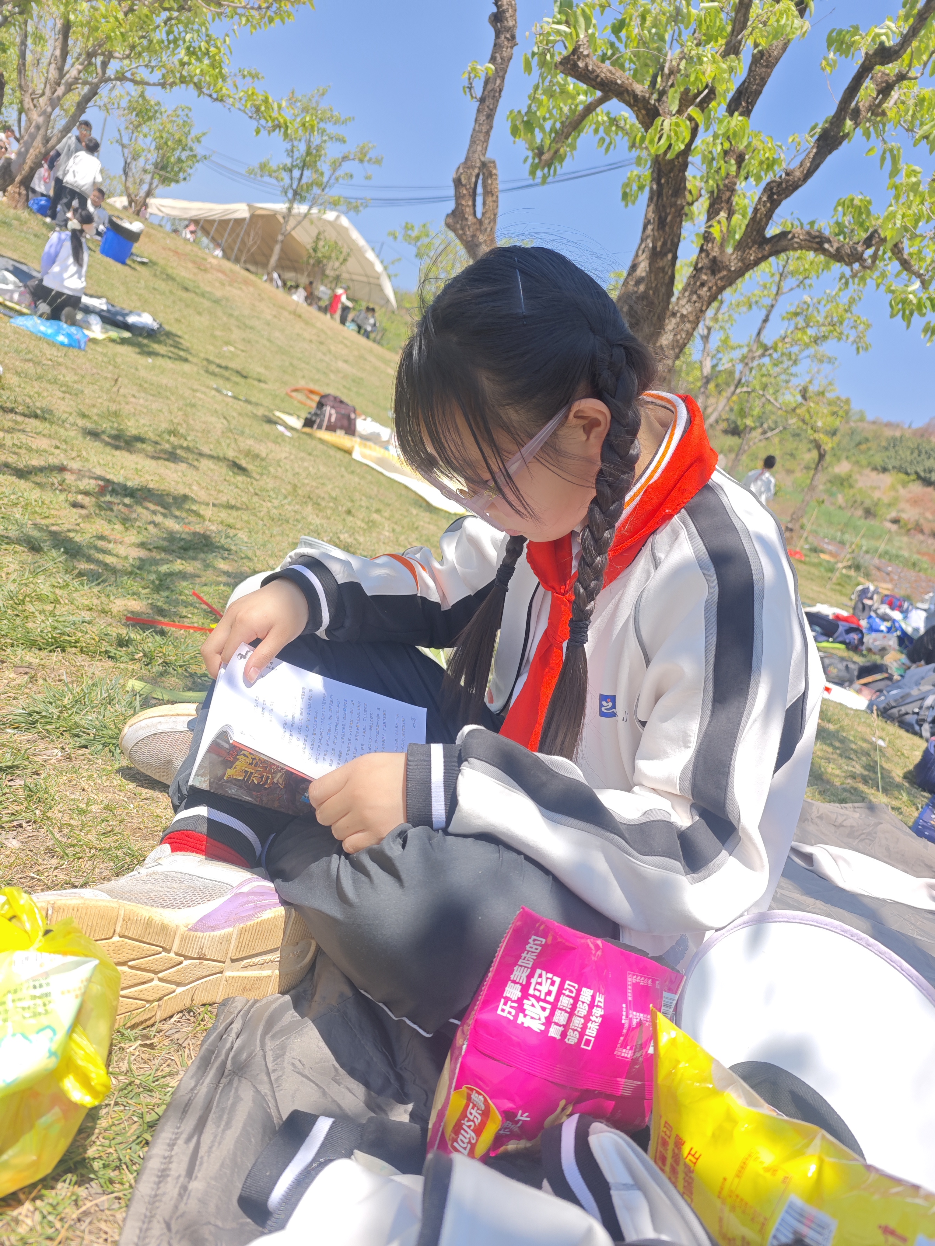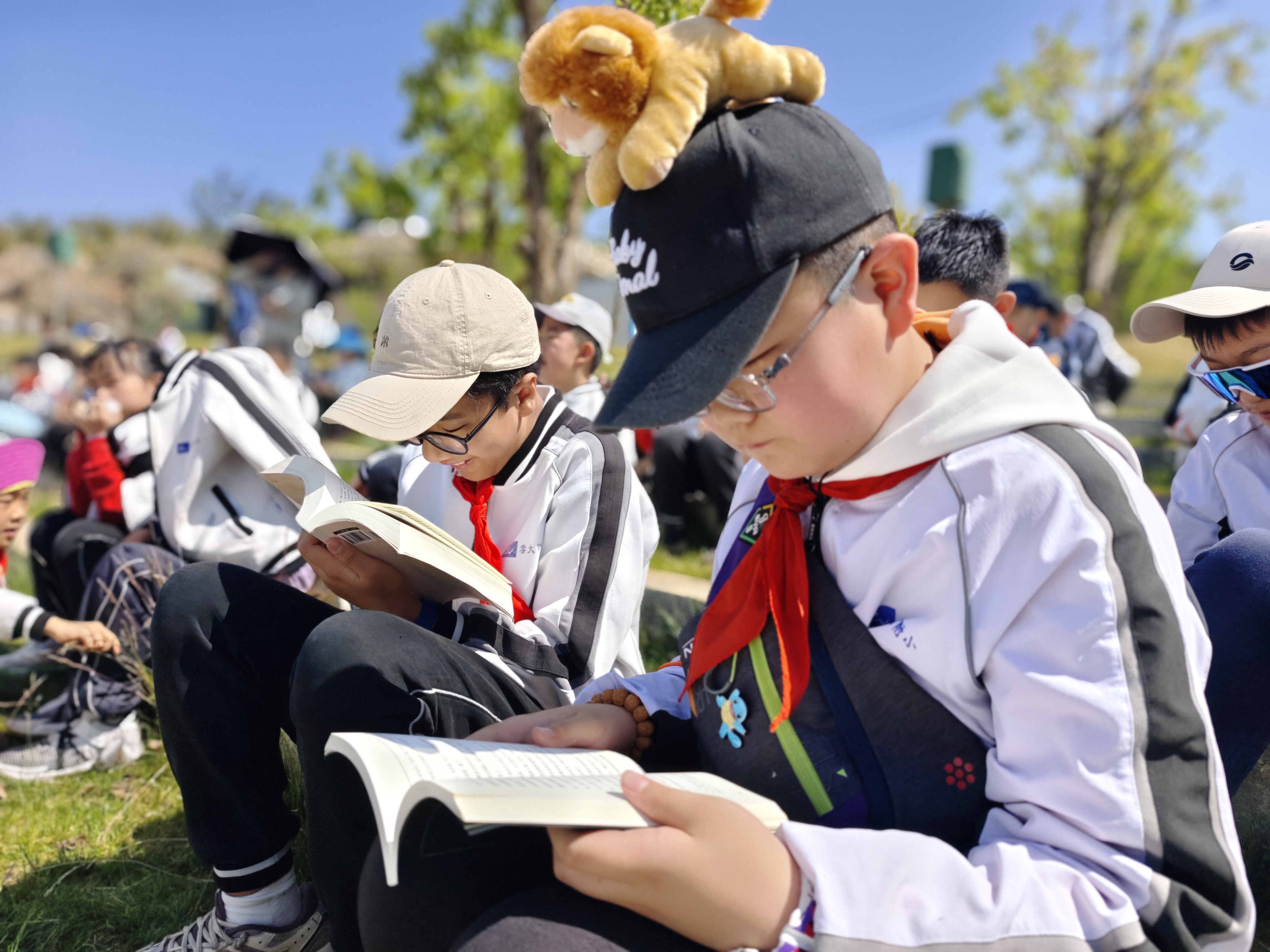 春风拂过万溪冲的千亩梨园,花瓣轻落,书香肆意弥漫。3月27日,云大附中小学部(以下简称:云大附小)将读书节启动仪式搬到了呈贡区万溪冲的五谷良田农场,在烂漫春光里,为全体学生开启了一场以“开卷沐春风,书香伴成长”为主题的阅读之旅。