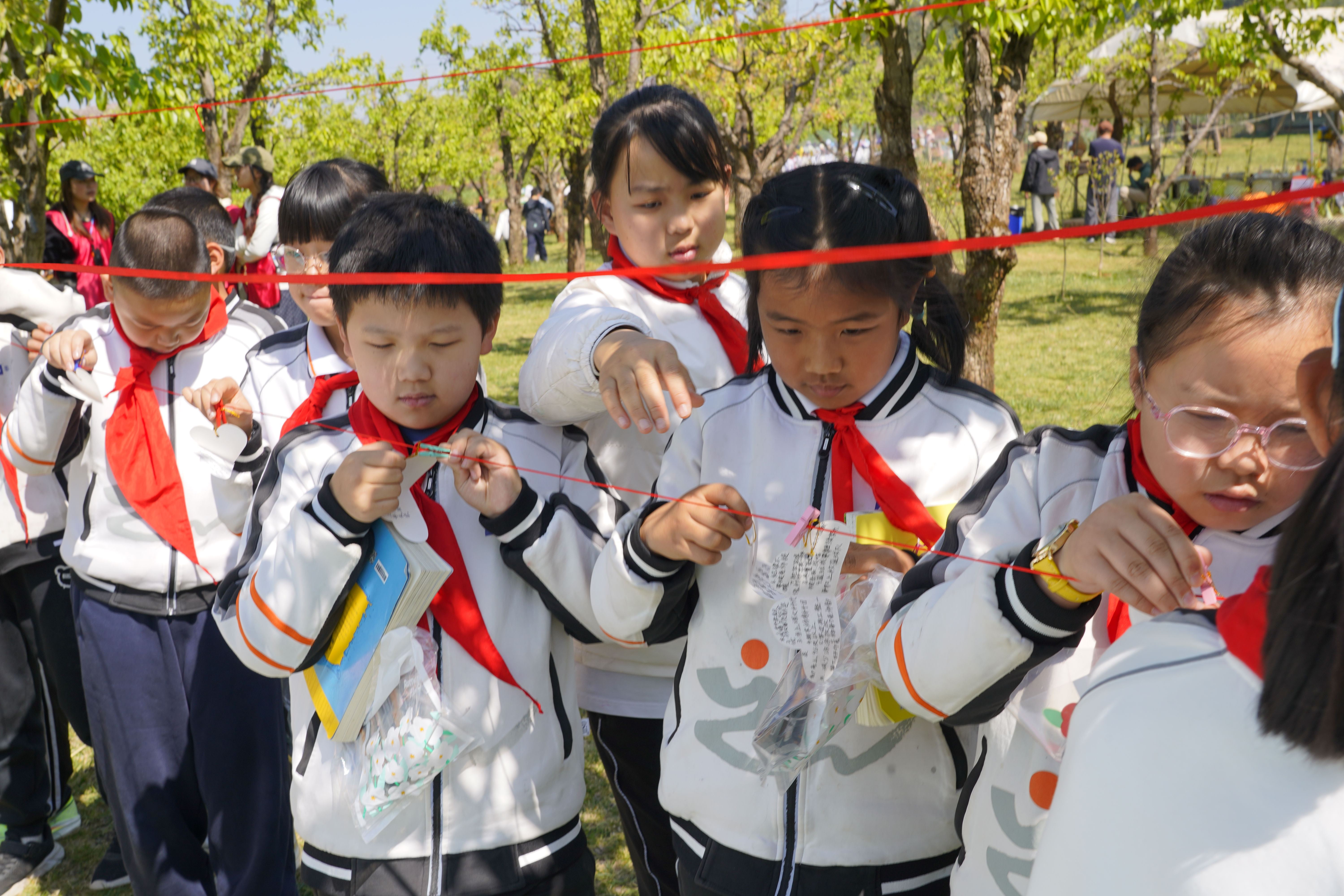 仪式上,同学们认真书写心愿,将承载着期盼的心愿卡悬挂于梨园枝头。通过书籍传递、成长宣誓等环节,同学们在浓浓书香中感悟成长的真谛,学会感恩担当,厚植责任意识与远大理想。一位参与活动的同学表示:“在梨树下读书很特别,我的心愿也好像和这片梨园连在了一起。”