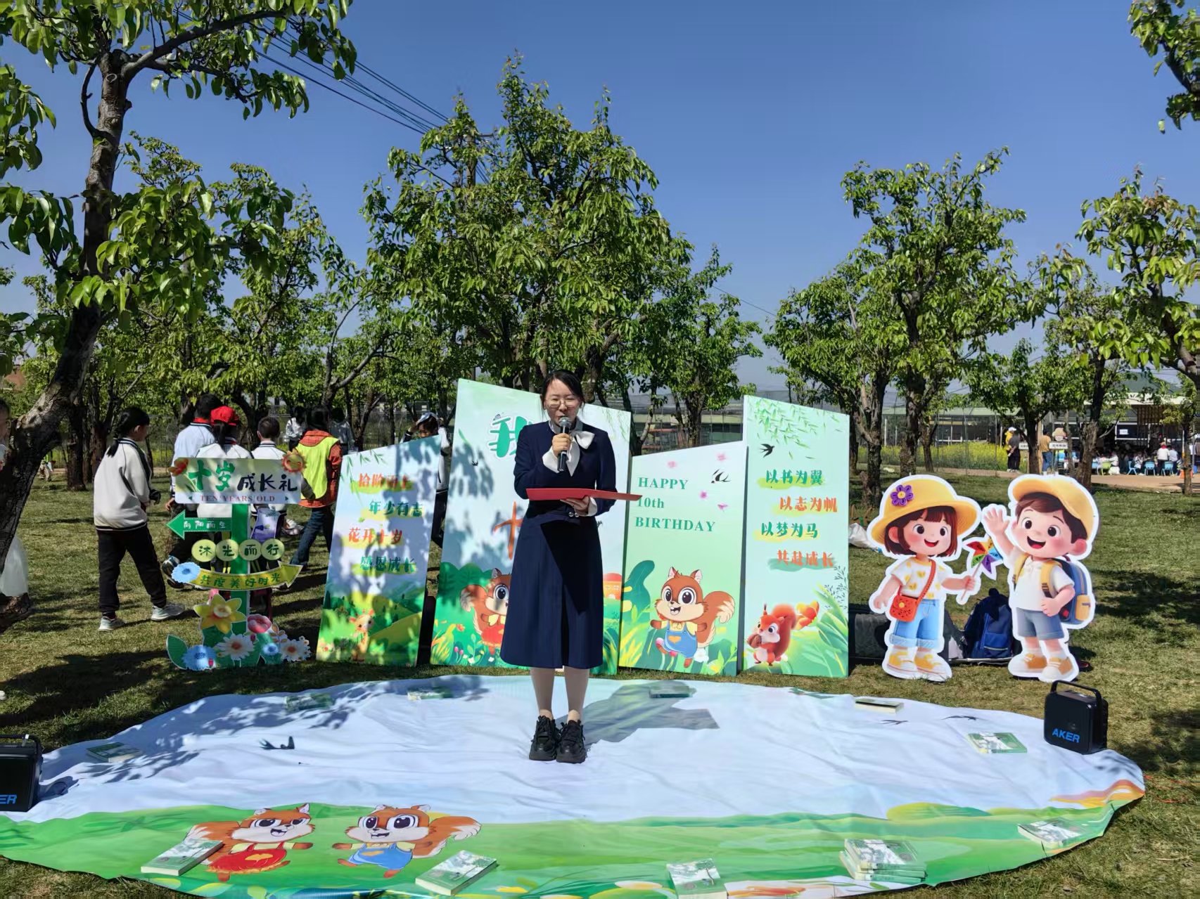 此次启动仪式以四年级“十岁成长礼”为重要载体,该校教师精心设计了诗韵致礼、书香引路、播种心愿、书香传递等一系列富有意义的环节。在梨园深处,老师们推荐了经典成长读物《十岁那年》,并带领学子共读经典片段,在文字中感悟成长的力量。学校还为四年级学子准备了特别的成长礼包,内含象征希望的种子、寄托梦想的纸飞机和怀揣童梦的心愿卡。每一件物品都承载着学校与老师对孩子们的殷切期许。