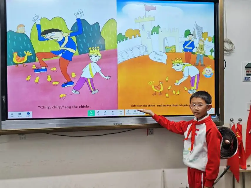 3至4年级上演绘本情景剧。从《Prince Seb‘s Pet》里的稀奇宠物,到《World Book Day》中的角色转换,学生们用手势、表情和语调变化还原故事情节,将绘本画面搬上舞台。