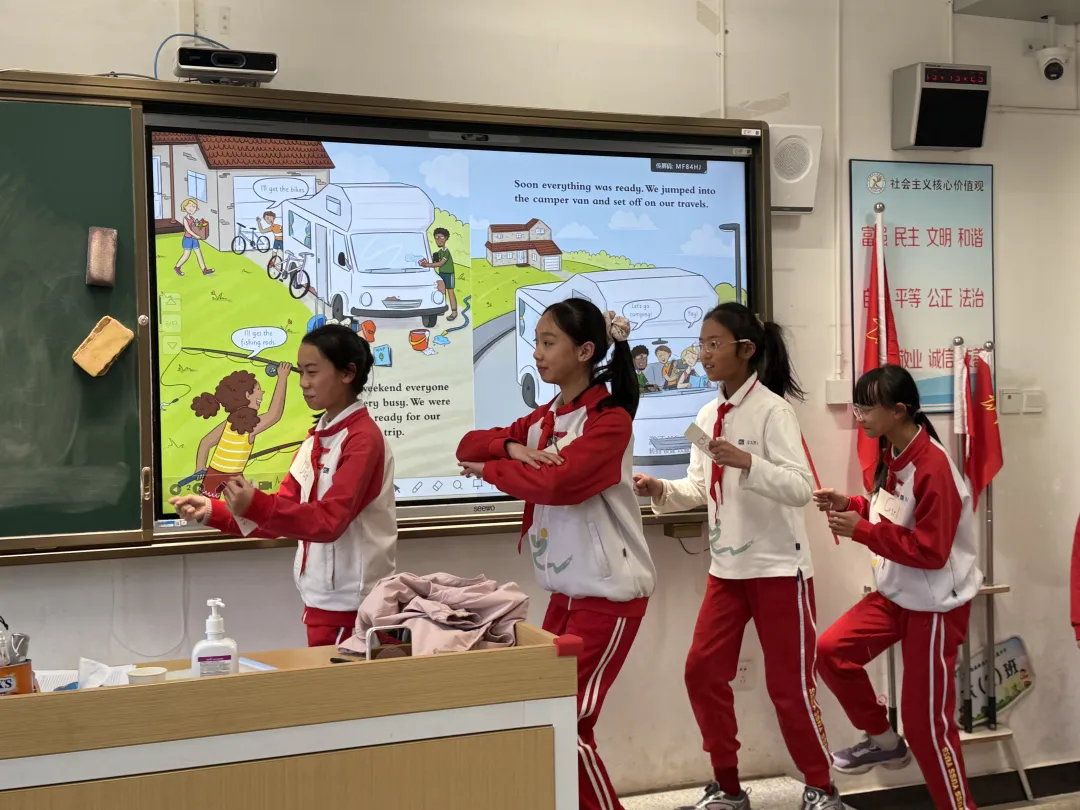 活动中,没有枯燥的背诵任务,也没有机械的刷题练习。孩子们通过每日10分钟的听读打卡,在儿歌和绘本中和英语“混个脸熟”;在分学段的舞台展演中,他们用配音、表演和情景再现,把书本里的故事“演”了出来。当语言不再是试卷上的选择题,而成为表达情感、演绎角色的工具时,学习便悄然发生。
