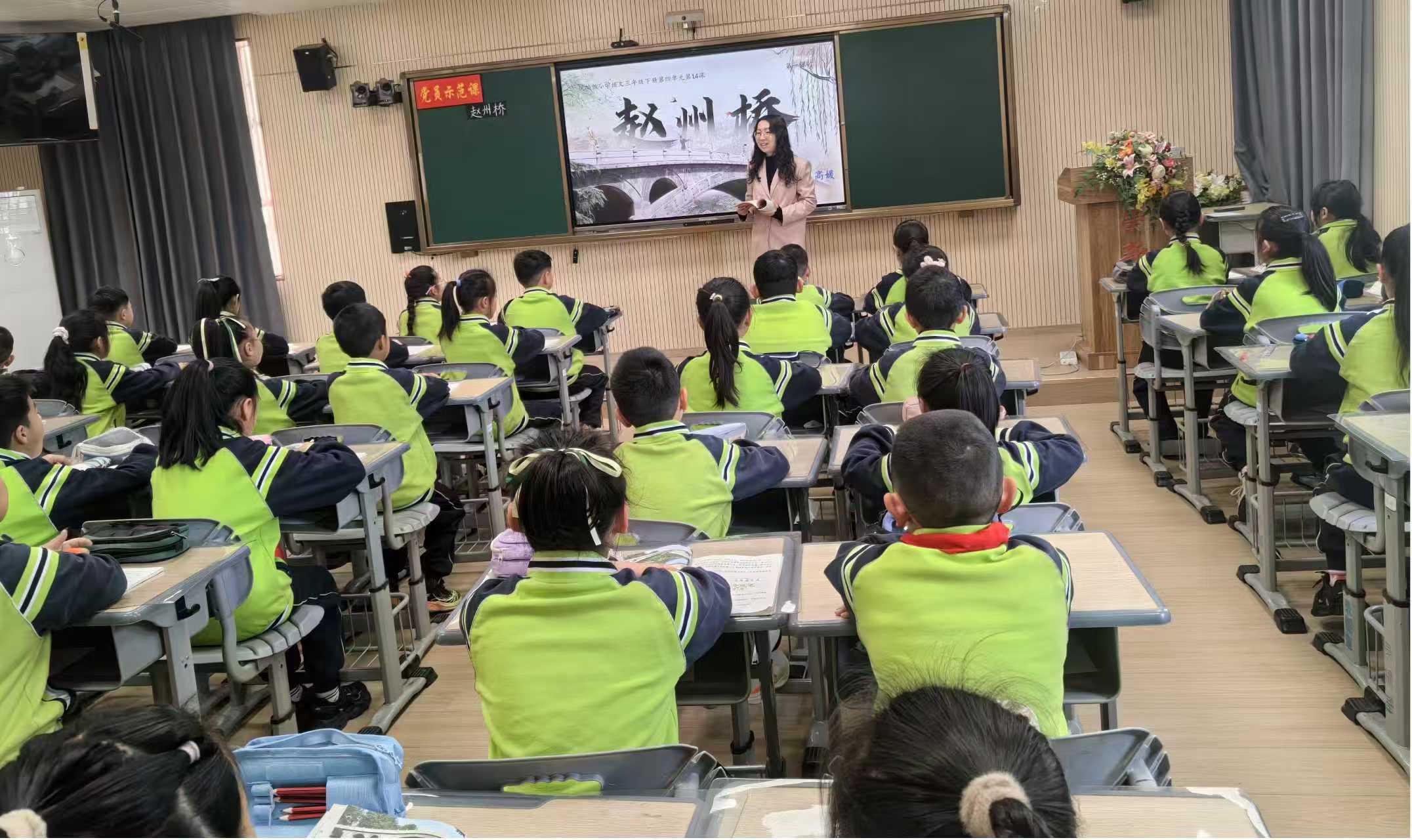 教师高媛率先教学三年级下册《赵州桥》一课。她以“设计国宝名片”为核心任务驱动,紧密围绕文本内容层层推进,让学生在动手实践中深化对课文的理解,不仅激活了思维,更让语文学习变得生动有趣。