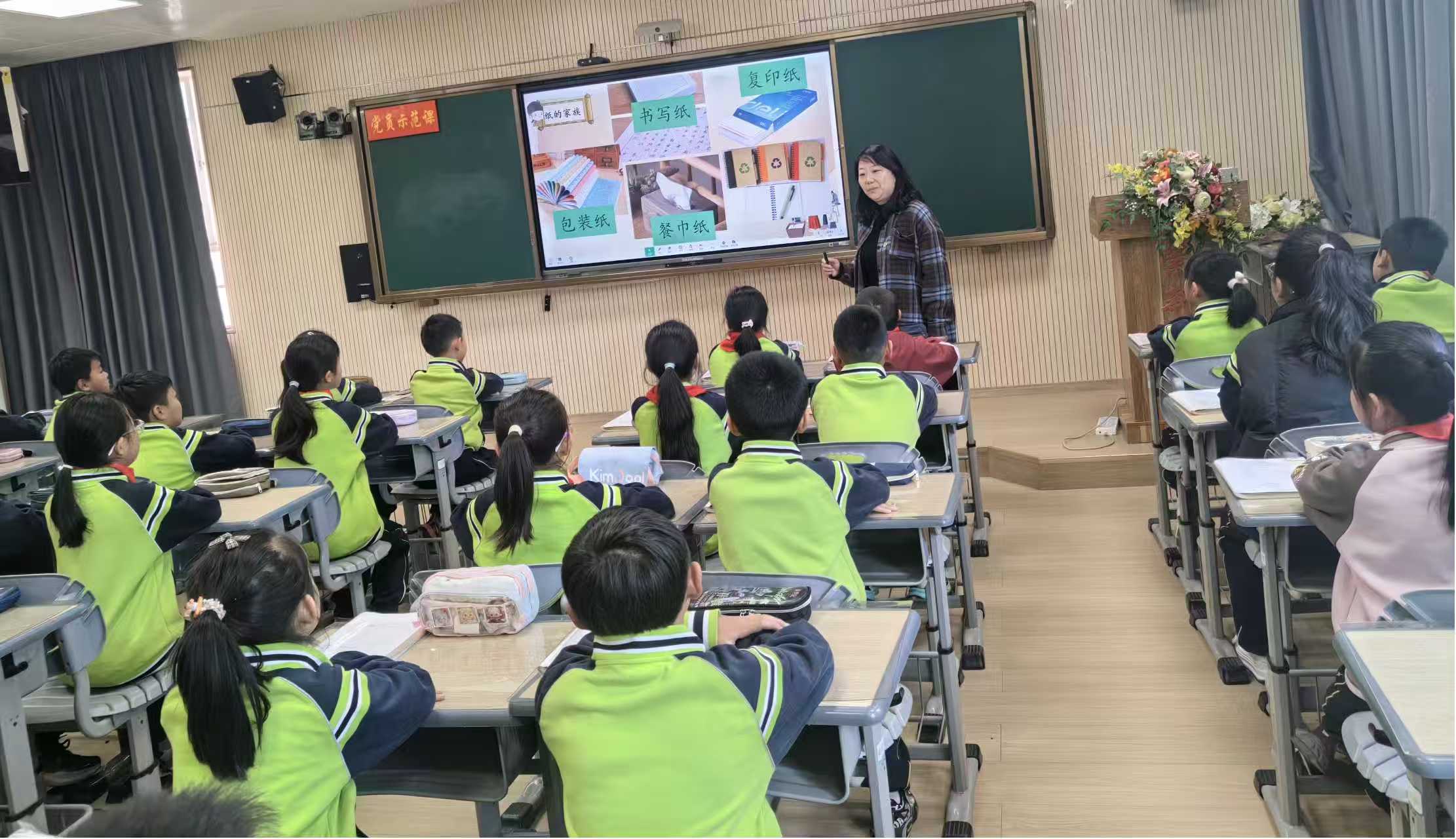 随后,教师赵佳妮带来了《纸的发明》展示课。课堂环节设计紧凑有序,思维引导由浅入深、层层递进。教学中,赵佳妮巧妙组织小组合作学习,全程注重引导学生提取文本关键信息,让学生在自主思考与合作探究中精准掌握了学习方法,有效落实了语文核心要素。