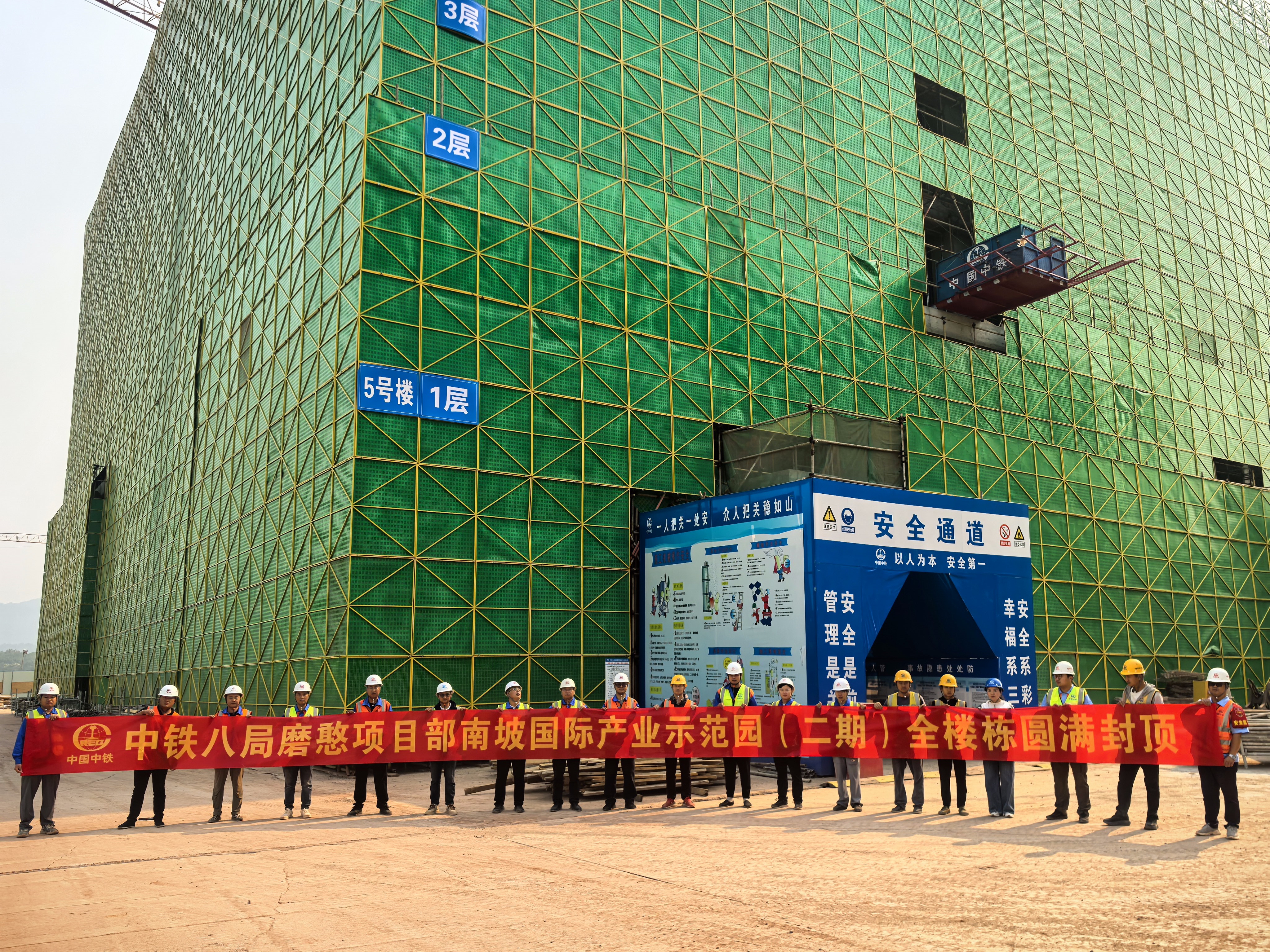 近日,随着最后一方混凝土浇筑完成,由中铁八局承建的磨憨南坡国际产业示范园二期项目5号楼主体结构顺利封顶,这也是示范园二期项目最后一栋封顶的单体建筑。
