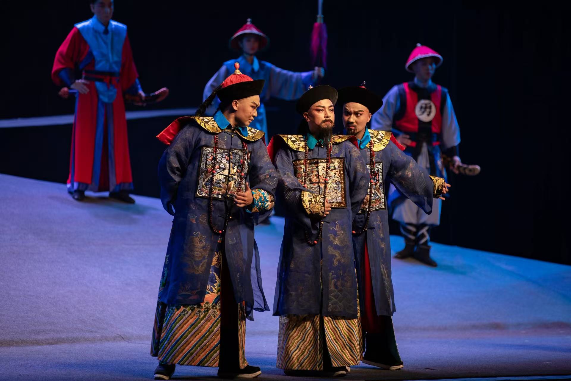 昆明市传统地方戏曲和曲艺传承展演中心(昆明市新潮文化经营有限公司)负责人、昆明戏剧家协会主席、主演杨明(饰演:钱南园)凭借唱腔酣畅淋漓、表演形神兼备的滇剧艺术表演功底,将钱南园演绎得令人热血沸腾,仿佛能透过激昂旋律感受角色刚正不阿与廉洁奉公的内心世界,将钱南园的浩然正气、廉洁忠良诠释得令人赞叹不已,大呼过瘾。其他的演员们也将浦霖、和珅、莲心、国泰、于易简等人物性格刻画得入木三分,让现场观众沉浸于跌宕起伏的剧情发展之中,深刻感受滇剧艺术的独特魅力,赢得台下阵阵掌声与喝彩。