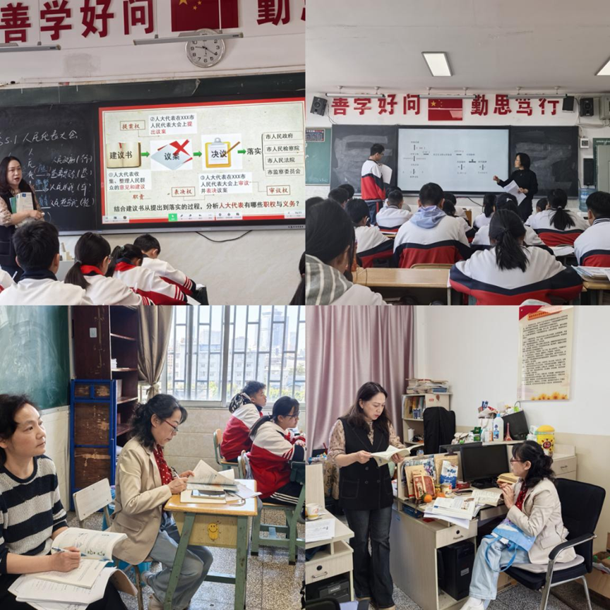 政史地组道德与法治学科呈现了《人民代表大会制度》等课堂;历史学科李老师以《春天的故事》讲授“改革开放的起步”,施老师紧扣考点开展现代史讲评,通过“双诊双反馈”进一步厘清备考思路。