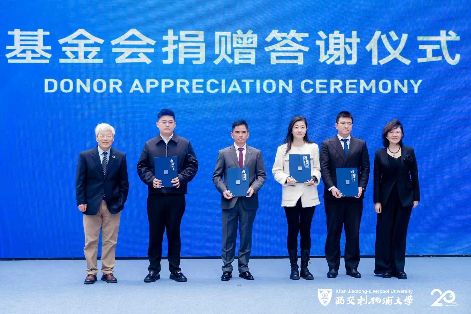活动期间同步举行了基金会捐赠答谢仪式。洲际绿电(海南)有限公司董事会主席李春萱先生、江苏神州半导体科技股份有限公司代表徐芳芳女士、苏州浦璟丰途教育科技有限公司董事长曹艺珩先生、瑞坤教育科技发展(苏州)有限公司总经理、西浦优秀校友代表贾蕴玉先生等向西浦发展提供支持。西浦执行校长席酉民教授、西浦副校长钞秋玲教授为其颁发捐赠证书。