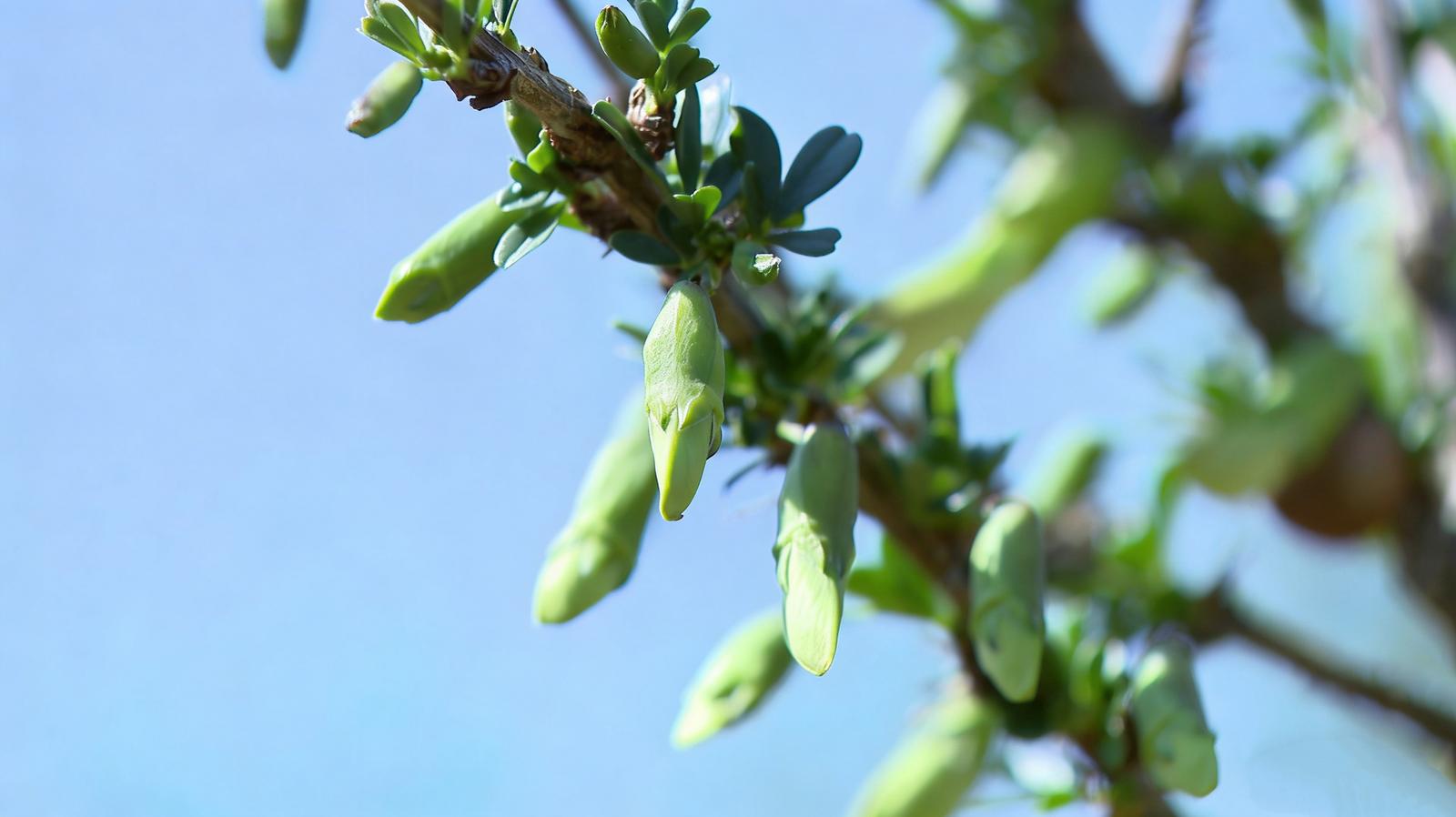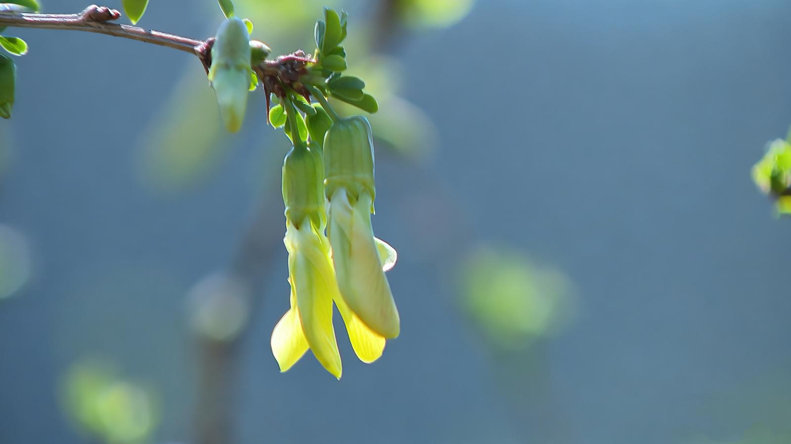 在平滩子村的金雀花种植基地里,一株株金雀花树上,鲜嫩金黄的花骨朵缀满枝头,工人们穿梭于花田,熟练地采收着这份春日限定的自然馈赠。