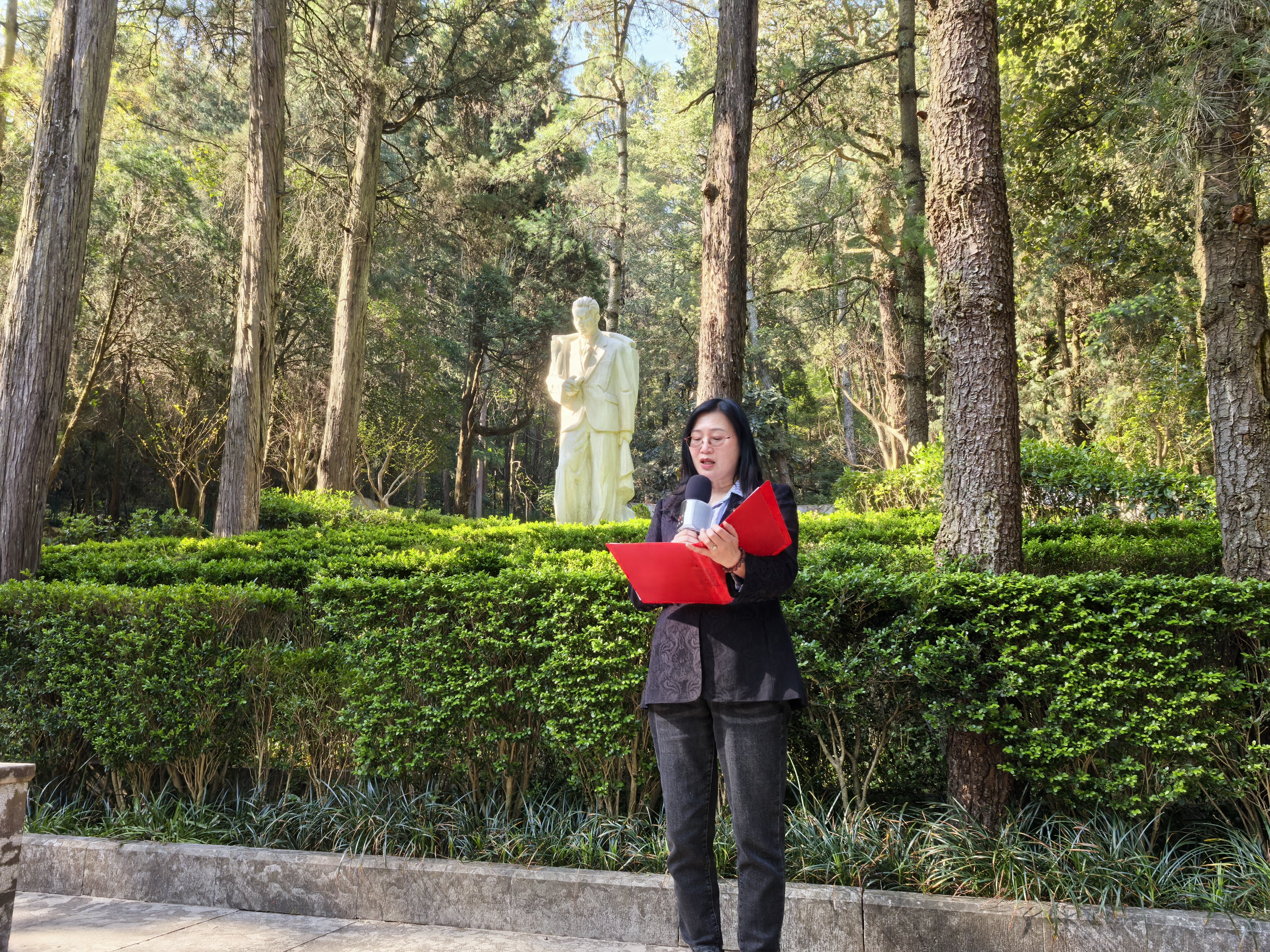 全体师生在聂耳墓前整齐列队,肃立奏唱国歌,鞠躬默哀,深切缅怀人民音乐家、革命先烈聂耳。学校党总支书记毕翠花寄语全体师生:要以清明祭扫为契机,铭记先烈事迹,传承红色基因,将爱国情、强国志融入日常学习与工作中,在新时代勇担使命、砥砺前行。船房分校支部书记胡成娟为大家讲述了聂耳的革命光辉事迹与聂耳墓的历史背景,让师生更深刻地理解了《义勇军进行曲》背后的热血与担当。少先队员代表演唱聂耳经典作品,用清澈嘹亮的歌声缅怀先烈,传递青春力量。