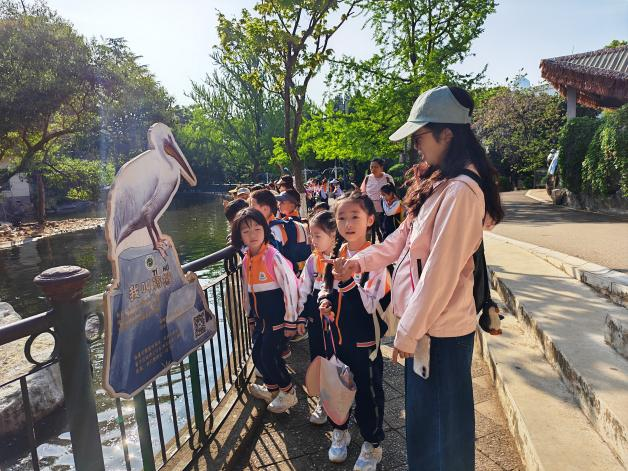 活动中,孩子们近距离观察鹈鹕、火烈鸟、天鹅、鹦鹉、孔雀等鸟类,认真聆听讲解,直观认识鸟类外形特征与生活习性。在动物园爱鸟周宣传展区,大家认识更多鸟类朋友,萌发爱护自然、保护动物的美好情感,纷纷表示要与小鸟做朋友,守护它们的家园。