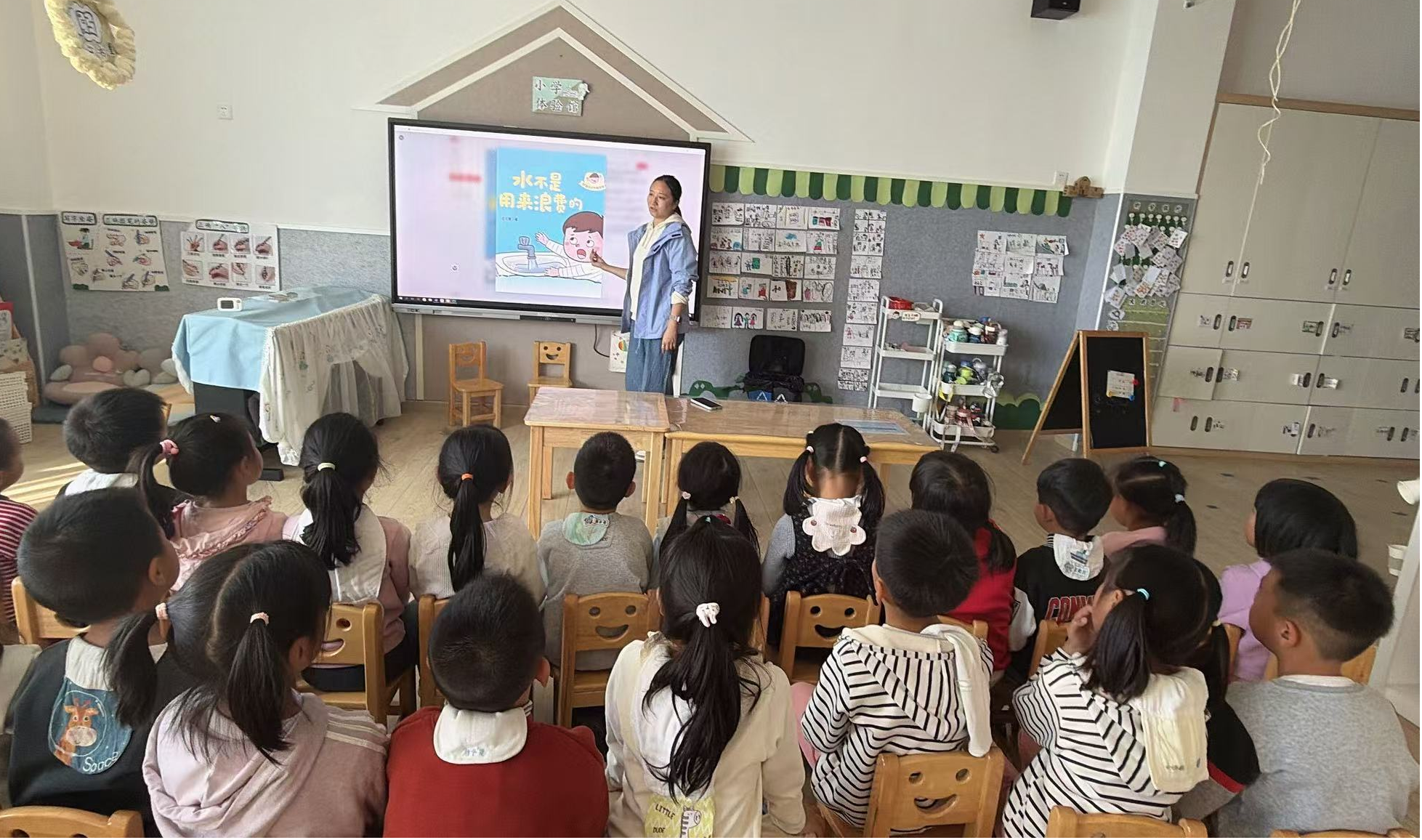 大班则通过绘本共读《水不是用来浪费的》,在生动的故事与画面中了解缺水困境,学习随手关水、一水多用等实用妙招,将节水知识转化为生活习惯。