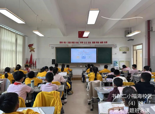 本次明礼主题教育充分融入学校“书林茂德,笃行致远”的校训,每节班会课都设置了与“五有”好少年办学目标关联的环节,让学校文化在一节节生动的班会课中可感可学。校长陈文敏表示,将持续探索“五育融合”的校本化路径,让每一个孩子都能在书二福海成长为肩上有责任、心中有梦想、眼里有光芒、脸上有笑容、身上有汗水的‘五有’好少年。