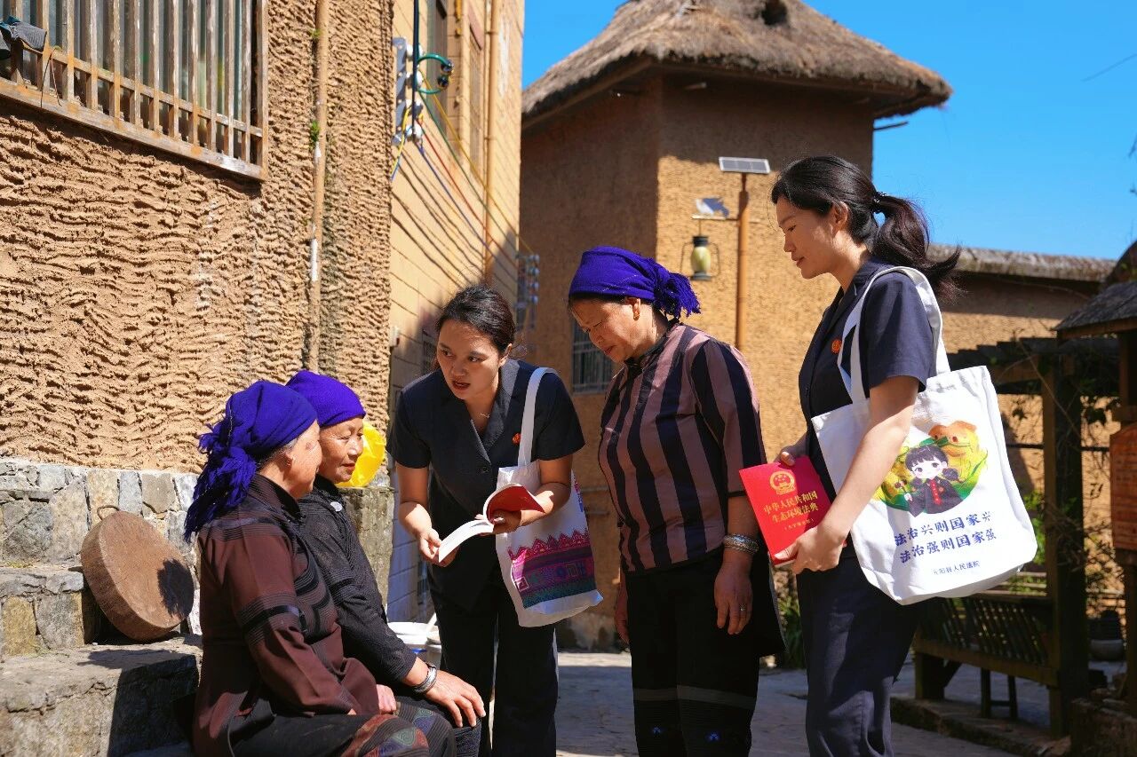 法院干警走进村寨,在蘑菇房前与村民同坐,采用“哈尼语+汉语”双语宣讲模式,将《生态环境法典》与村民生产生活紧密结合,用接地气的“家常话”,讲透生态保护与乡村发展、邻里和睦的密切关联。