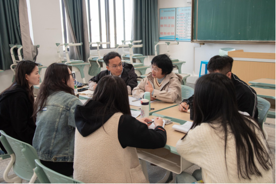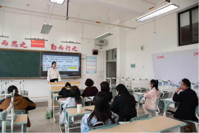 每堂课后,两校教师均围坐在一起,围绕课堂设计、教学创新、备考方向、命题思路等核心问题逐一发言。听课教师的笔记本上密密麻麻记满了课堂环节和时间节点,评课时有人直接提出“这道题的变式训练可以再加一层次”,也有人追问“AI情境生成的素材来源是否可靠”。现场没有客套话,讨论持续到中午才结束。