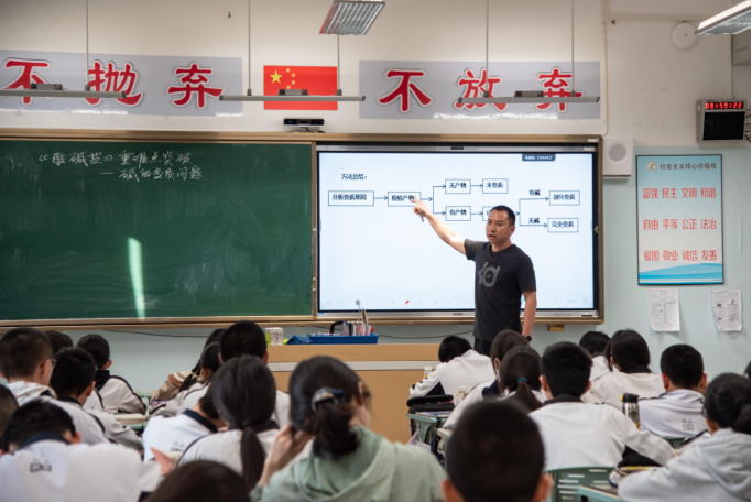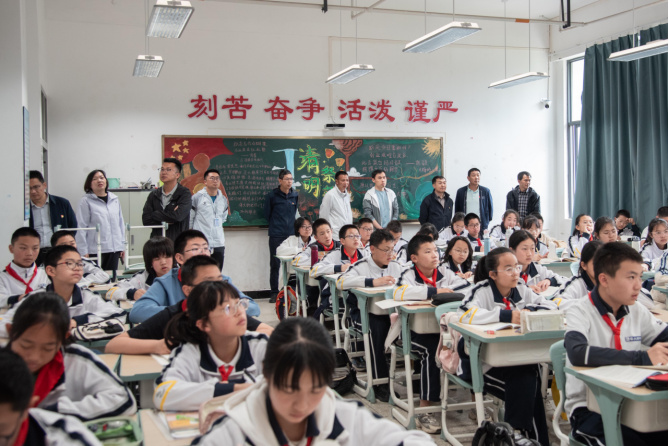 4月1日上午,西南林业大学附属中学(云大附中西林学校,以下简称:西林附中)的教学楼里,九年级的学生正在上课,后排听课的老师们低头快速记录。讲台上,历史教师杨左益正用人工智能工具生成“人类命运共同体”的实时情境案例,学生们的目光紧跟着屏幕,不时举手提问。这是昆钢实验学校与西林附中联合开展的一场跨校教研活动。