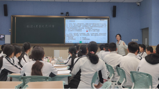 杨左益老师执教的《人类命运共同体》复习课,以“AI赋能”为核心亮点,将人工智能工具融入复习教学,通过情境生成、实时反馈等方式,让抽象概念具象化,极大地调动了学生的参与热情。课后,两校教师开展了专题教研,聚焦“专题复习课策略”进行深入研讨。我校教师分享了如何利用技术手段优化复习结构、提升课堂效率的实践经验,双方就复习计划、知识整合与素养落地交换了看法。
