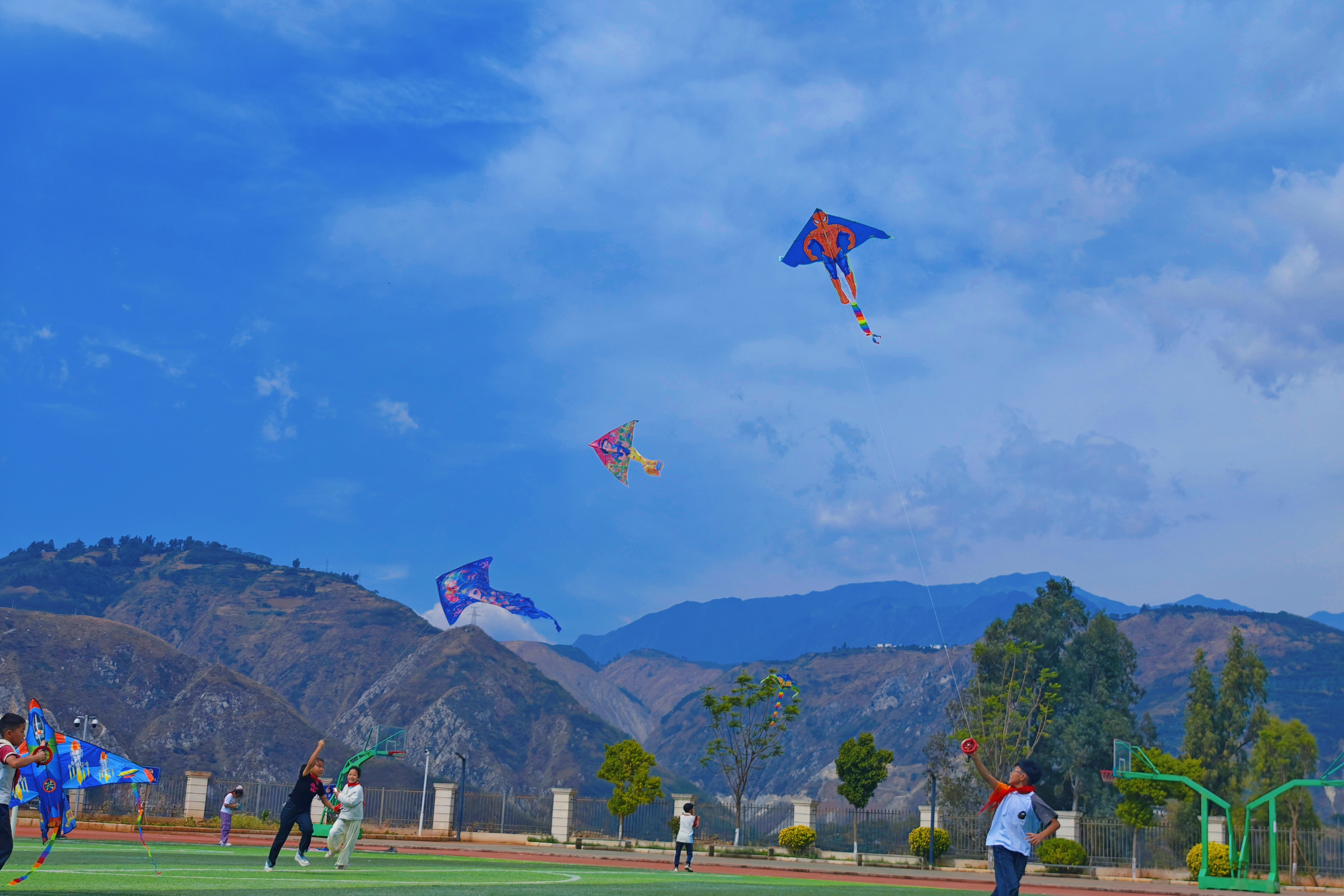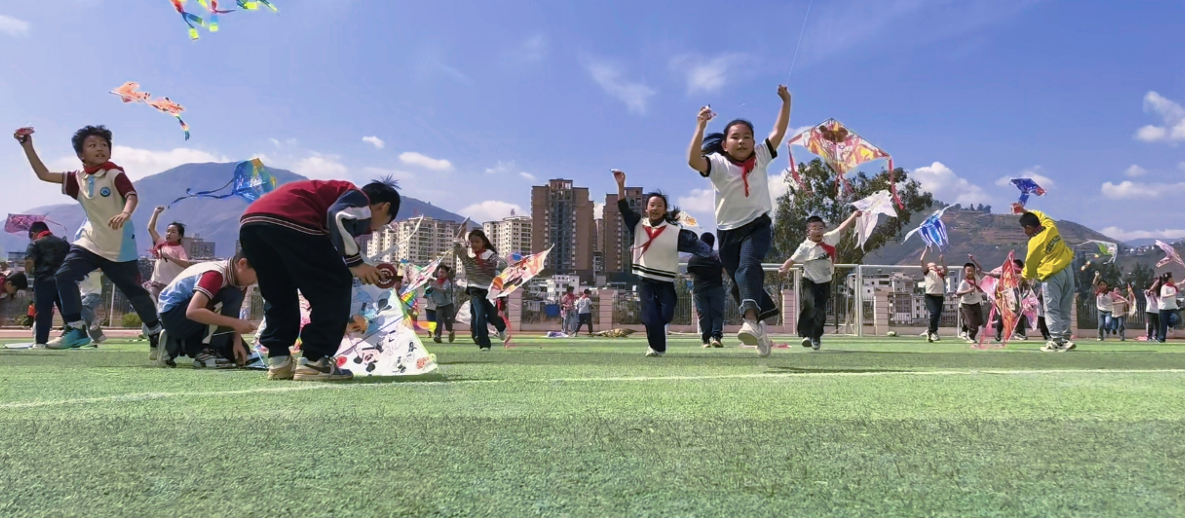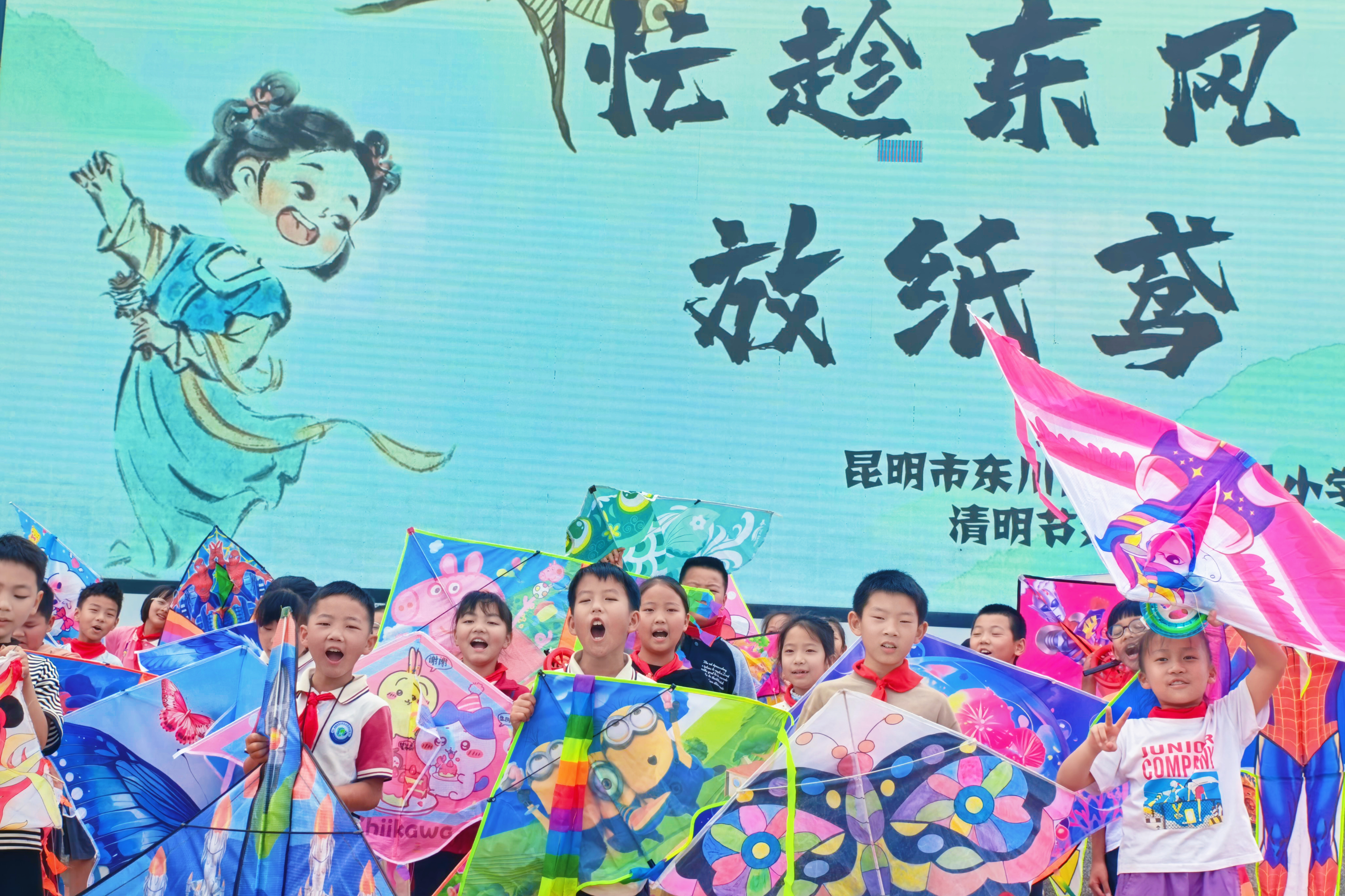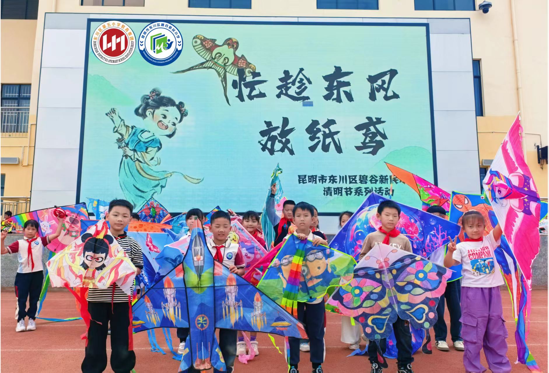 清明风至,草长莺飞。近日,在昆明市东川区第五小学教育集团碧谷新民小学的操场上,孩子们仰头望着蓝天——一只只纸鸢正乘着春风,摇摇摆摆地向上攀升,像写给天空的一封封彩色信笺。这是该校“纸鸢载春韵·清风寄追思”清明节放风筝主题活动的现场。作为东川区第五小学教育集团成员学校,该校将传统文化教育与乡土情怀培育相结合,让孩子们在放风筝中感受清明民俗的独特韵味。