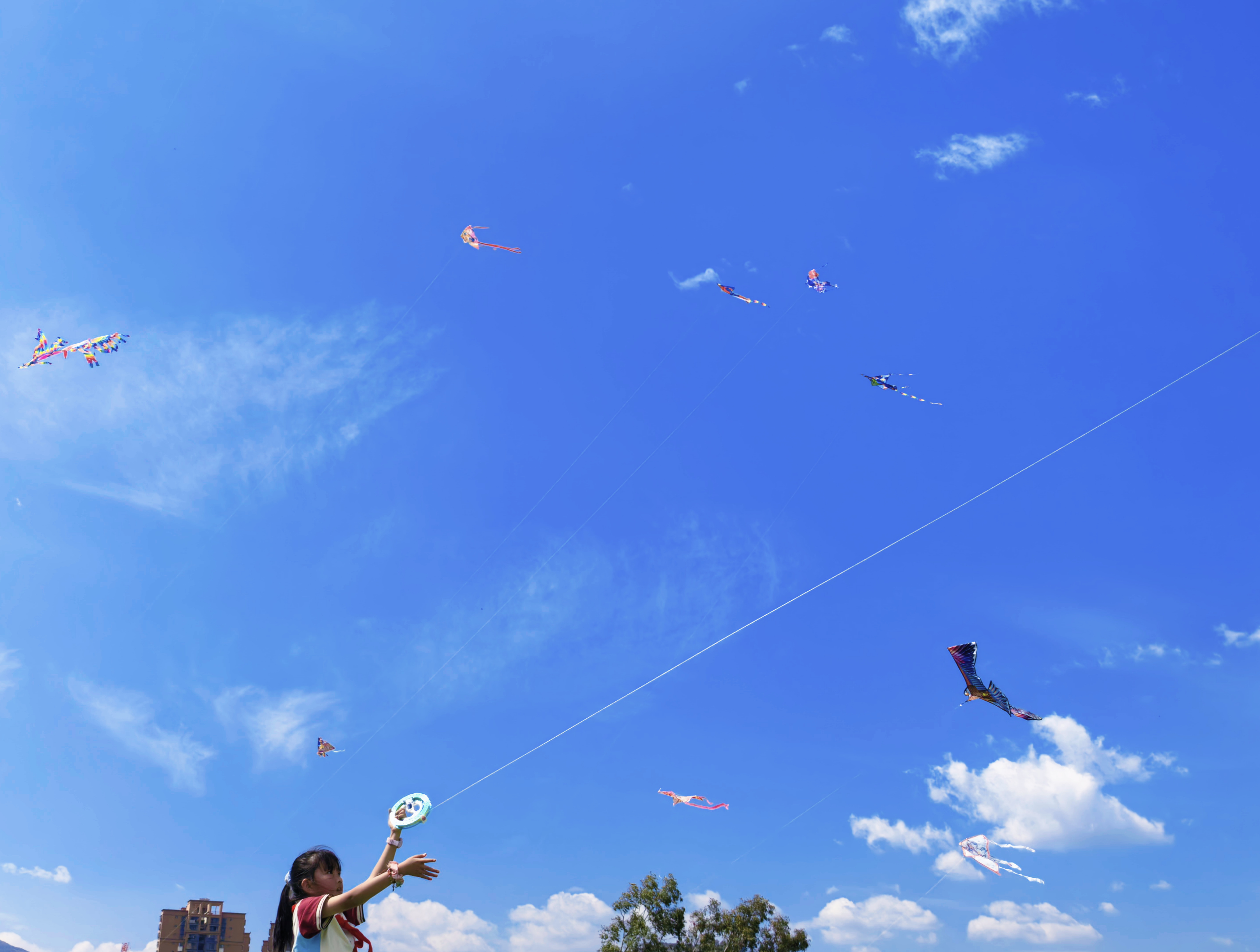 户外放飞环节将活动推向高潮。孩子们迎着和煦的春风,一手托风筝,一手拉线,小步快跑。纸鸢陆续升空,有蝴蝶形、金鱼形、三角形彩翼,在碧空中摇摇摆摆、扶摇直上。