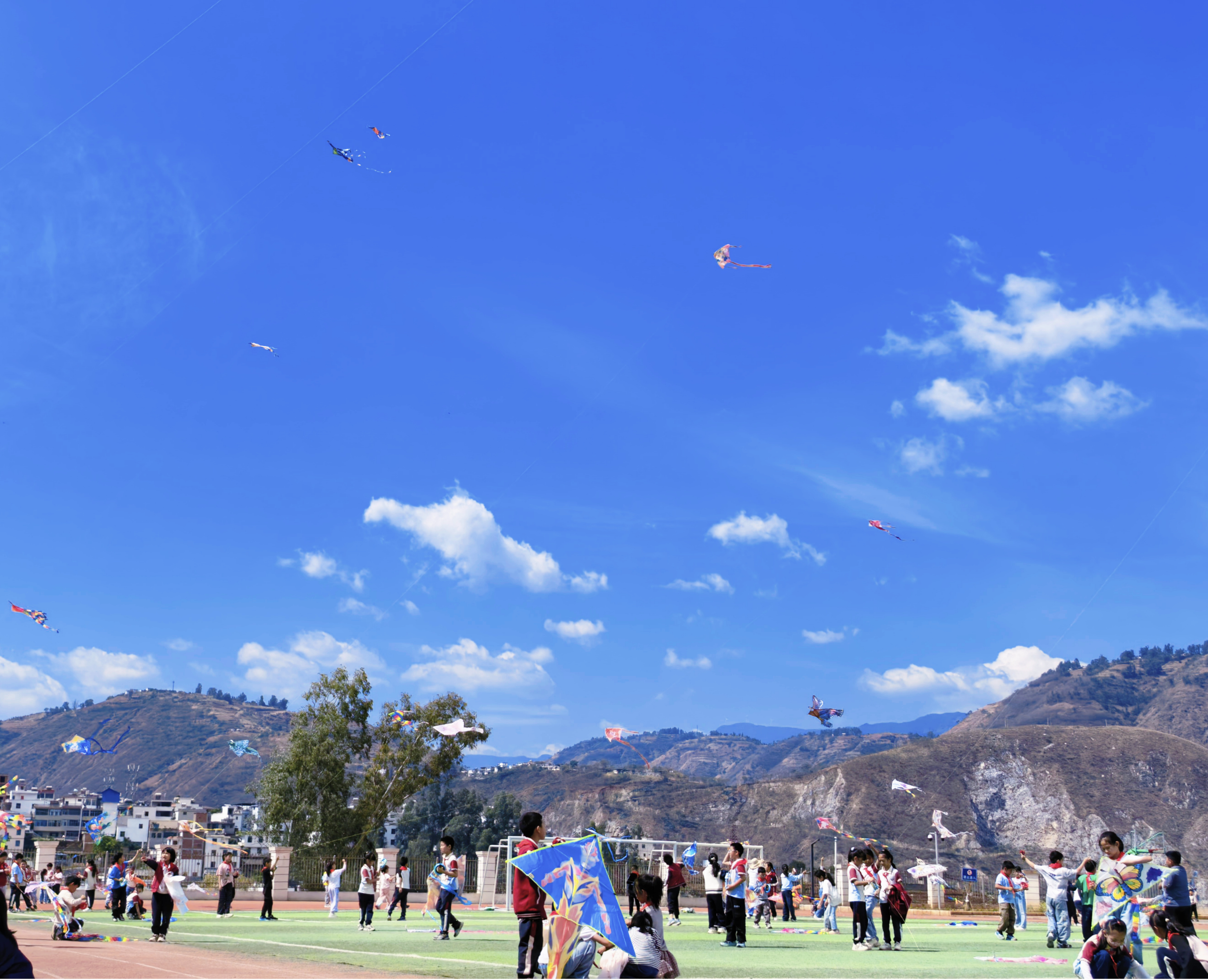 文化课后,孩子们以画笔为媒,在空白风筝上自由创作。有的画下东川春日风光;有的勾勒家乡风物;还有的在风筝上画了思念的纹样,或写下对先人的追思。