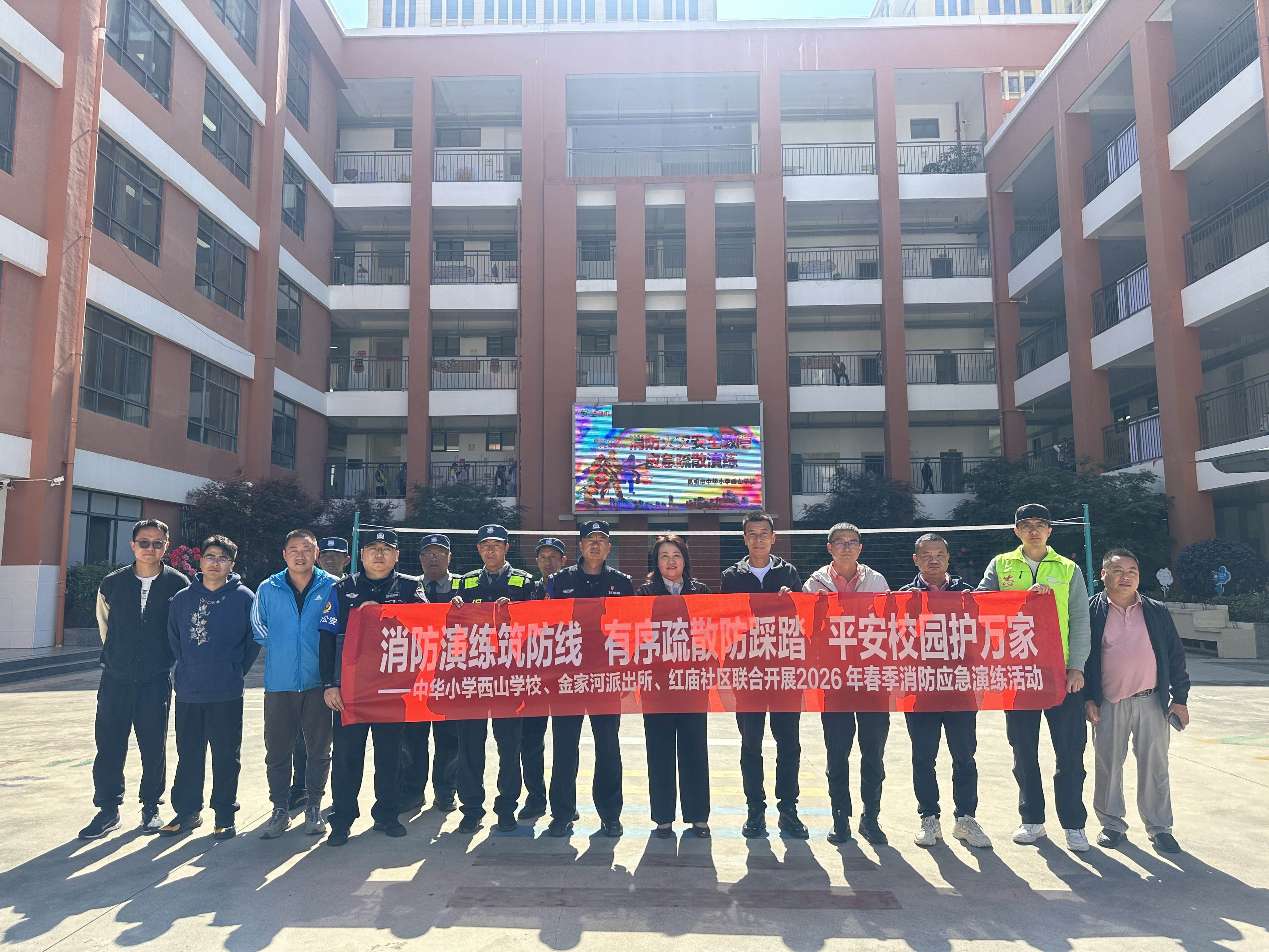 为进一步增强全体师生的消防安全意识和应急避险能力,切实掌握火灾发生时的逃生、自救、互救基本技能,4月3日上午,昆明市中华小学西山学校组织全校师生开展了春季消防应急疏散演练活动,此次活动也得到社区民警和志愿者的专业支持和协助。