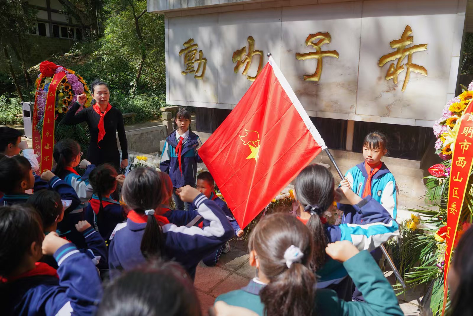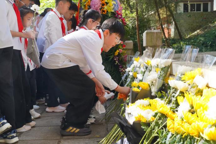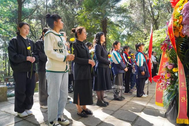 为缅怀革命先烈,传承红色基因,4月2日,⻄⼭区春苑⼩学教育集团春苑校区以“清明祭英烈·丰碑励童心”为主题,组织教师、学生代表及家长代表前往西山南洋华侨机工抗日纪念碑开展清明祭扫活动。