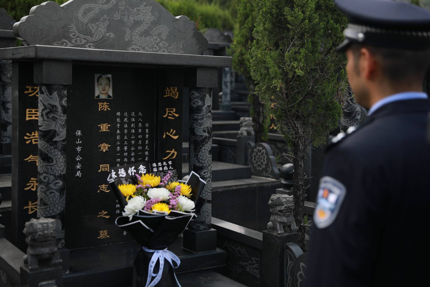 4月2日的云南保山阴云低垂。清明节前夕,保山市公安局禁毒支队毒品查缉大队(原流动查缉大队)的民警辅警们如约来到战友陈重章的墓前,深情悼念这位为禁毒事业献出生命的英雄。