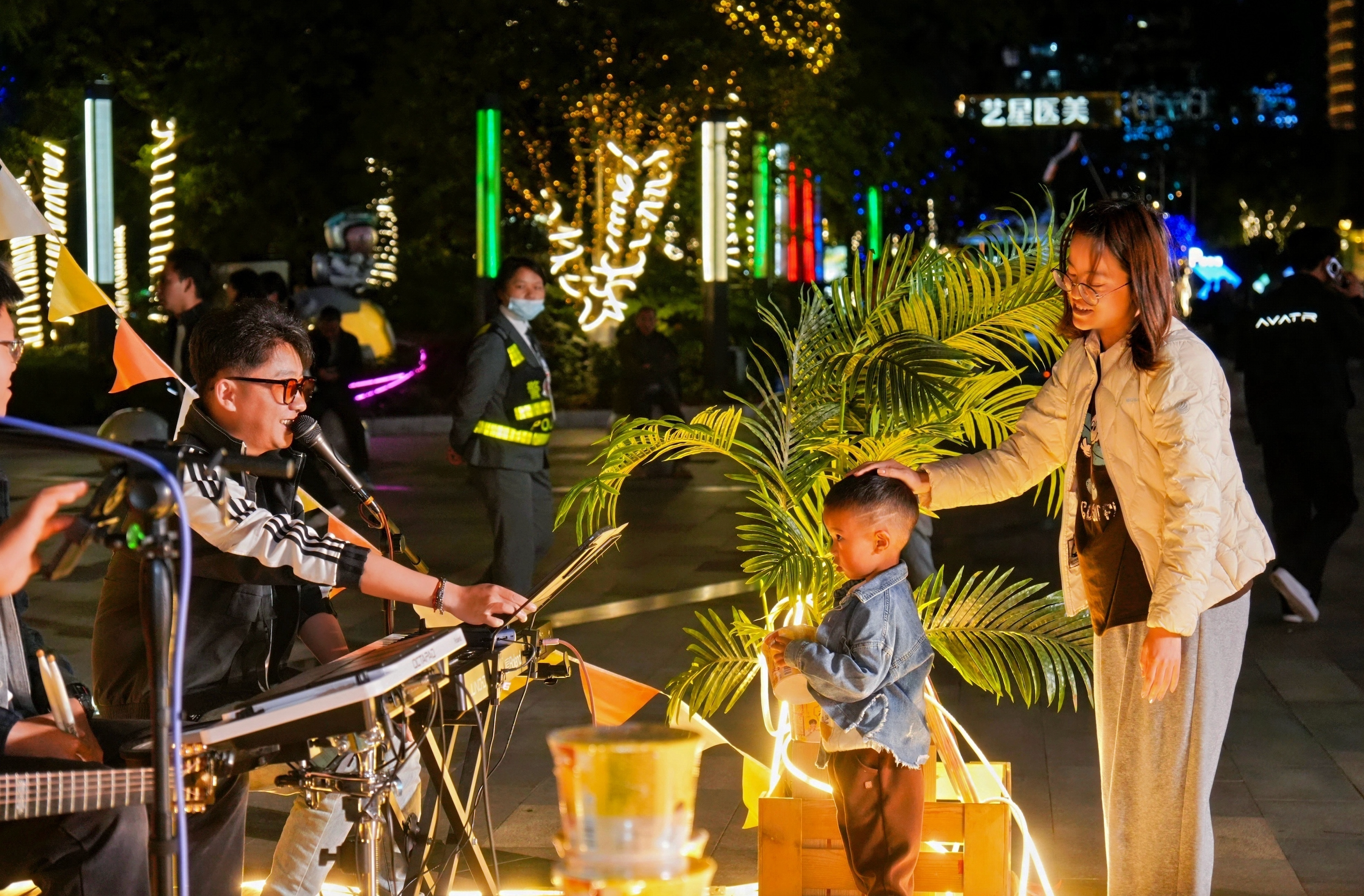 除免费供应鸡汤面外,现场还举办了“打工人音乐会”。没有华丽舞台,只有真诚的歌声。参与者手端热面,坐在广场台阶上听歌、聊天。一位现场市民告诉记者:“今天加班到很晚,本来心情挺差的,来领了一碗面,听着歌,突然觉得昆明也没那么冷。”
