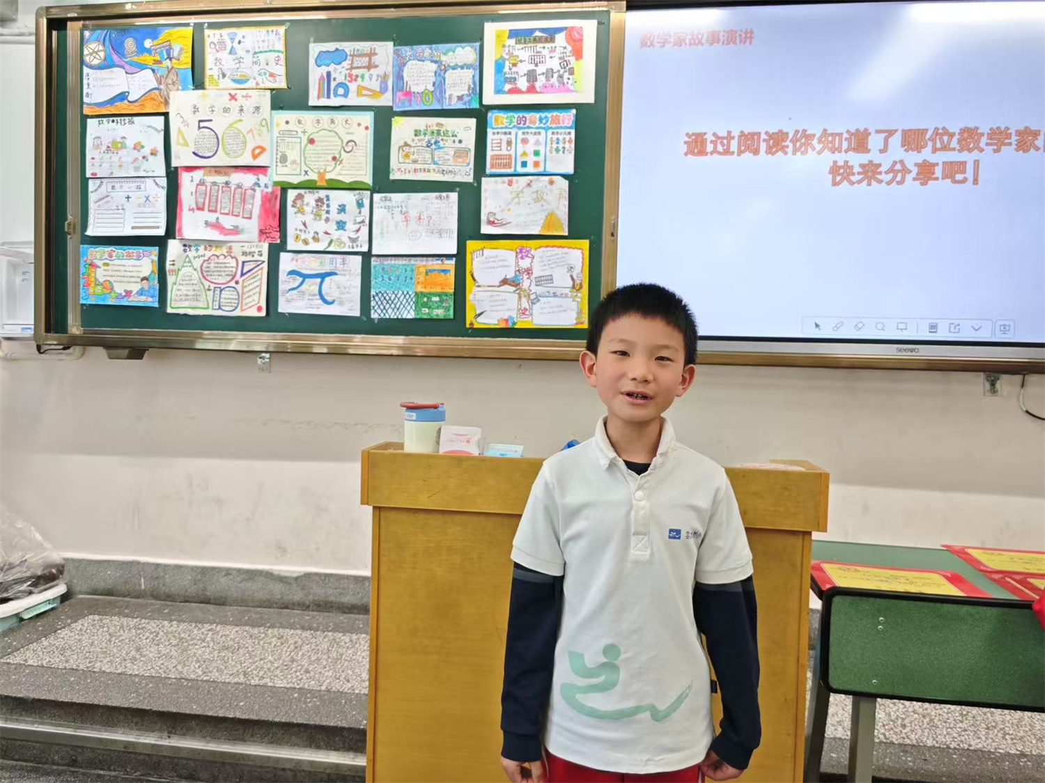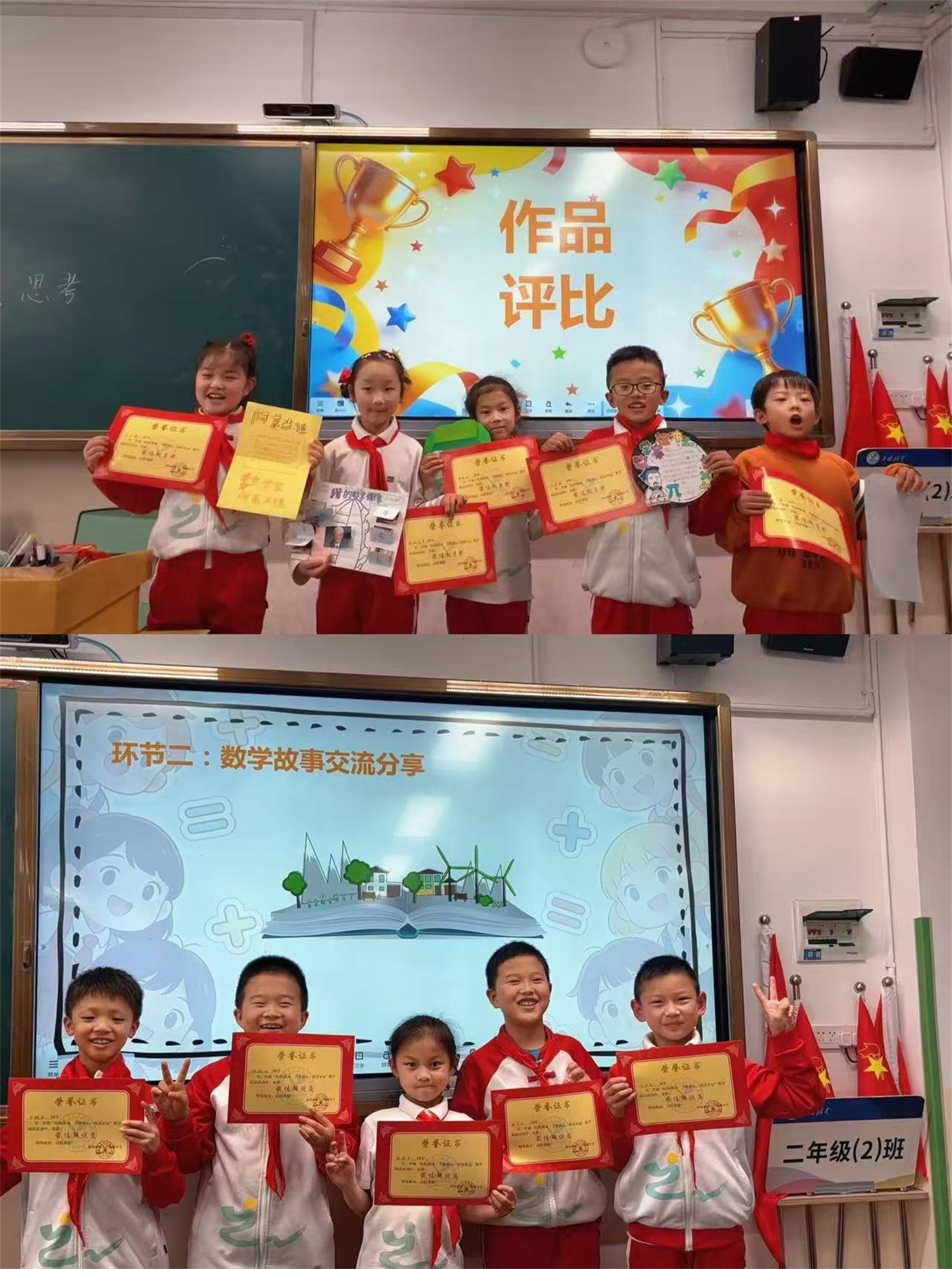 一年级以“悦读数学·趣享智慧”为主题。老师带领孩子们走进数学绘本和数学家故事。小小数学家演讲、数学手抄报展评、数学情景剧展演等环节轮番进行。活动评选出“演讲小能手”“创意小画家”等奖项。