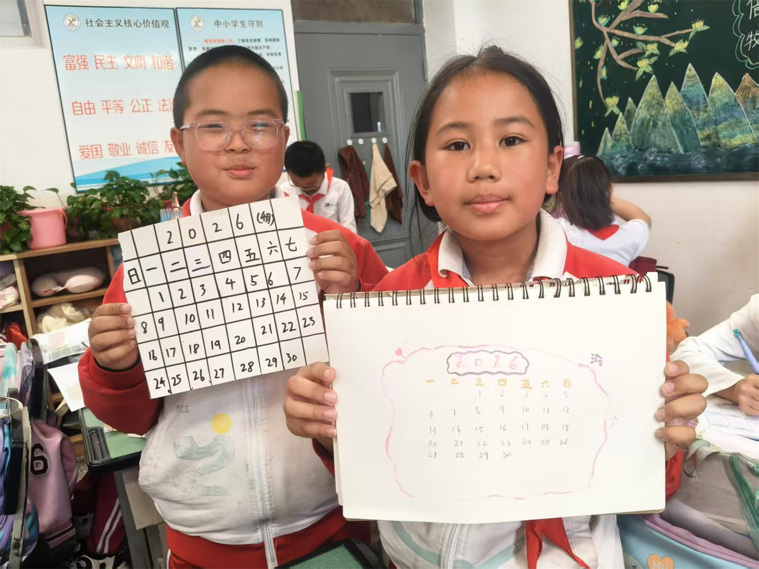 三年级以“时光的故事”为主线,开启年月日探秘之旅。学生自主翻阅书籍,小组交流分享。老师梳理大小月、平年闰年等知识。在“未来工坊”环节,孩子们亲手设计月历,写下对未来的寄语。