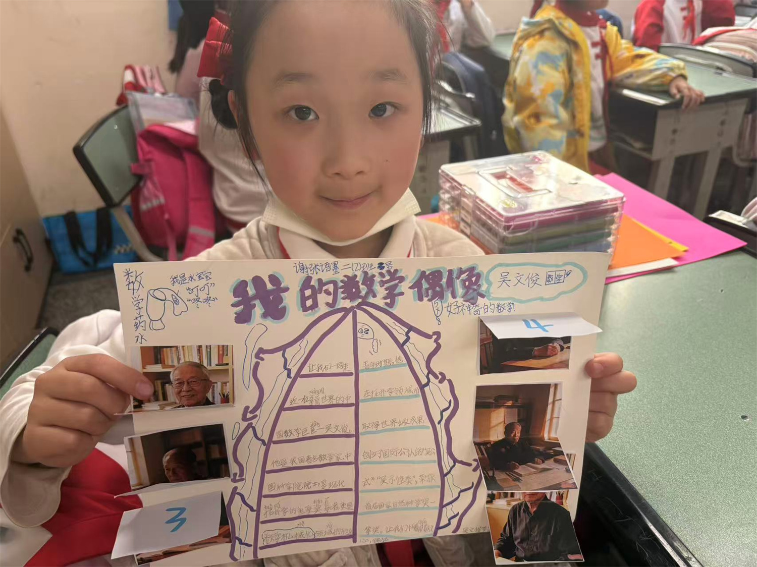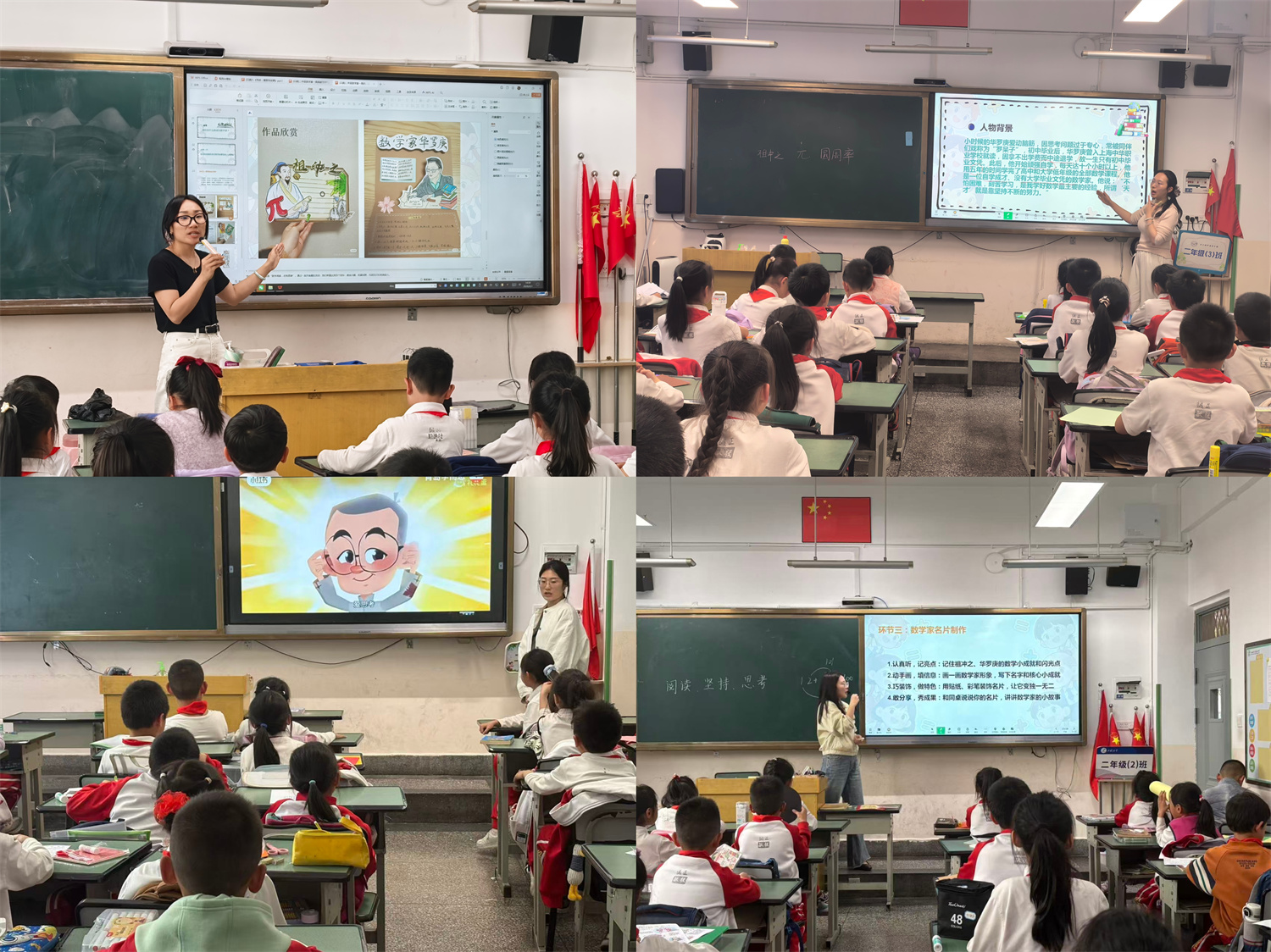 二年级的主题是“趣味数学·快乐阅读”。同学们走进祖冲之、华罗庚的数学世界,探秘圆周率的由来,感受数学家坚持不懈、勇于探索的精神。通过趣味故事讲解、小组交流分享、创意数学家名片手工制作等丰富环节,孩子们锻炼了表达能力、团队协作能力与动手实践能力。活动现场还评选出数学名片最佳创意奖,让数学阅读变得生动有趣、好玩好学。