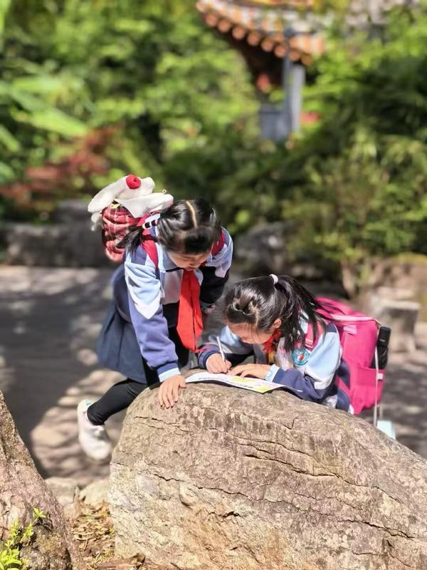 与此同时,一至四年级的同学们在金殿名胜区开启了“踏春寻古 探知成长”之旅。同学们将课堂延伸至户外,在沉浸式研学中全面发展。