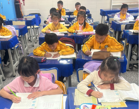 硬笔书法课堂上,从握笔姿势、笔画运笔到间架结构,孩子们一笔一画认真书写,在横竖撇捺间规范习惯、涵养心性,既提升书写工整度,也在静心临摹中沉淀耐心,培养严谨认真的学习态度与良好的书写素养。