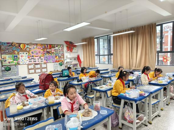 陶艺课堂上,揉泥、拉坯、塑形的过程,不仅锻炼了学生的动手能力,更让孩子们在耐心打磨中学会沉静、克服急躁情绪,锤炼坚韧品格;非遗手工课程中,学生们接触传统技艺、传承文化根脉,在一扎一染、一剪一粘中感受传统文化的魅力,增强文化自信。