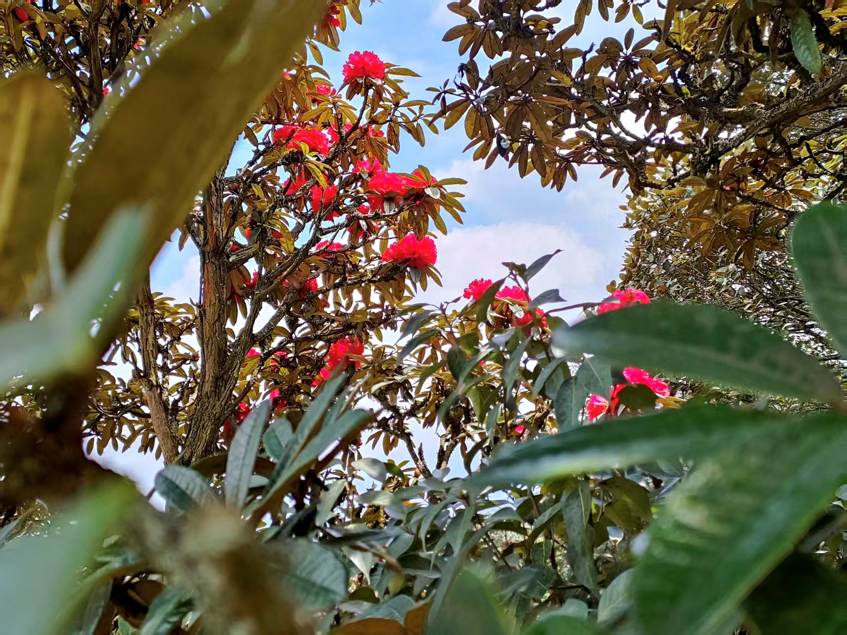除了参与民俗表演,大量游客选择自由漫步于三台村的万亩花海之中。漫山遍野的马缨花正值盛放期,红、粉、白各色花朵层层叠叠,如霞似锦。游客们或三五成群结伴而行,或独自徜徉花间小道,不时停下脚步拍照留念,尽情享受春日山野的宁静与美好。