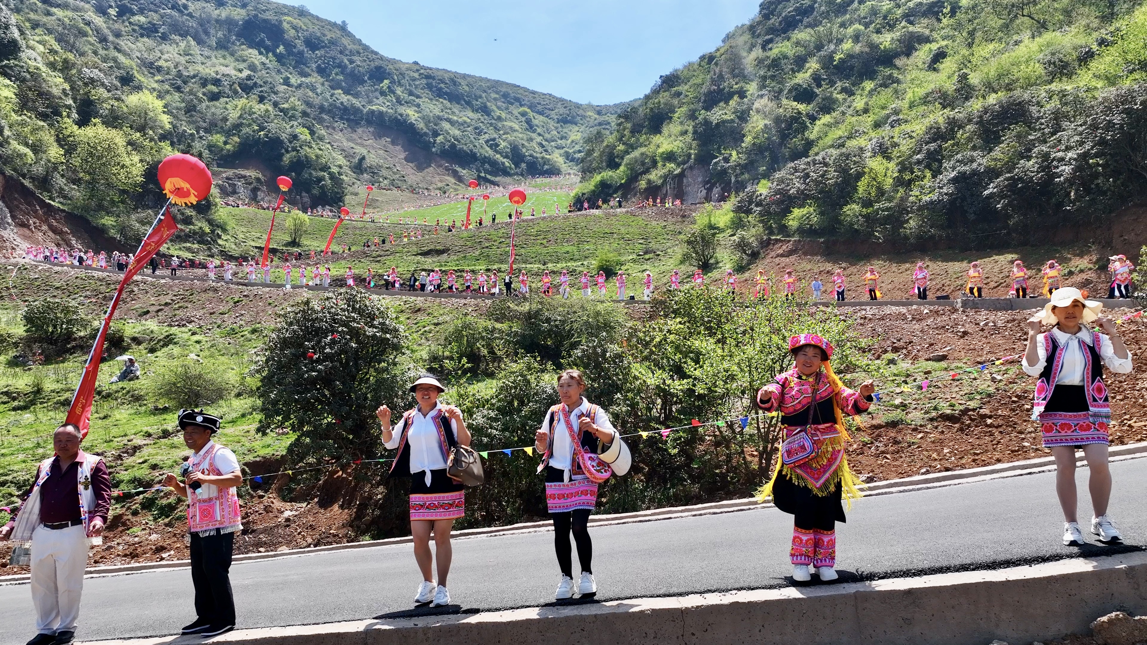 “踏歌花山行”民俗舞蹈展演,800余名彝族文化爱好者组成“人龙”队伍,身着绚丽民族服饰,在十九拐公路全线跳起《阿唛呼》广场舞、唱起彝族山歌,形成“流动的民族舞台”“流淌的民族画卷”,成为本次活动最具视觉冲击力和传播力的亮点之一。