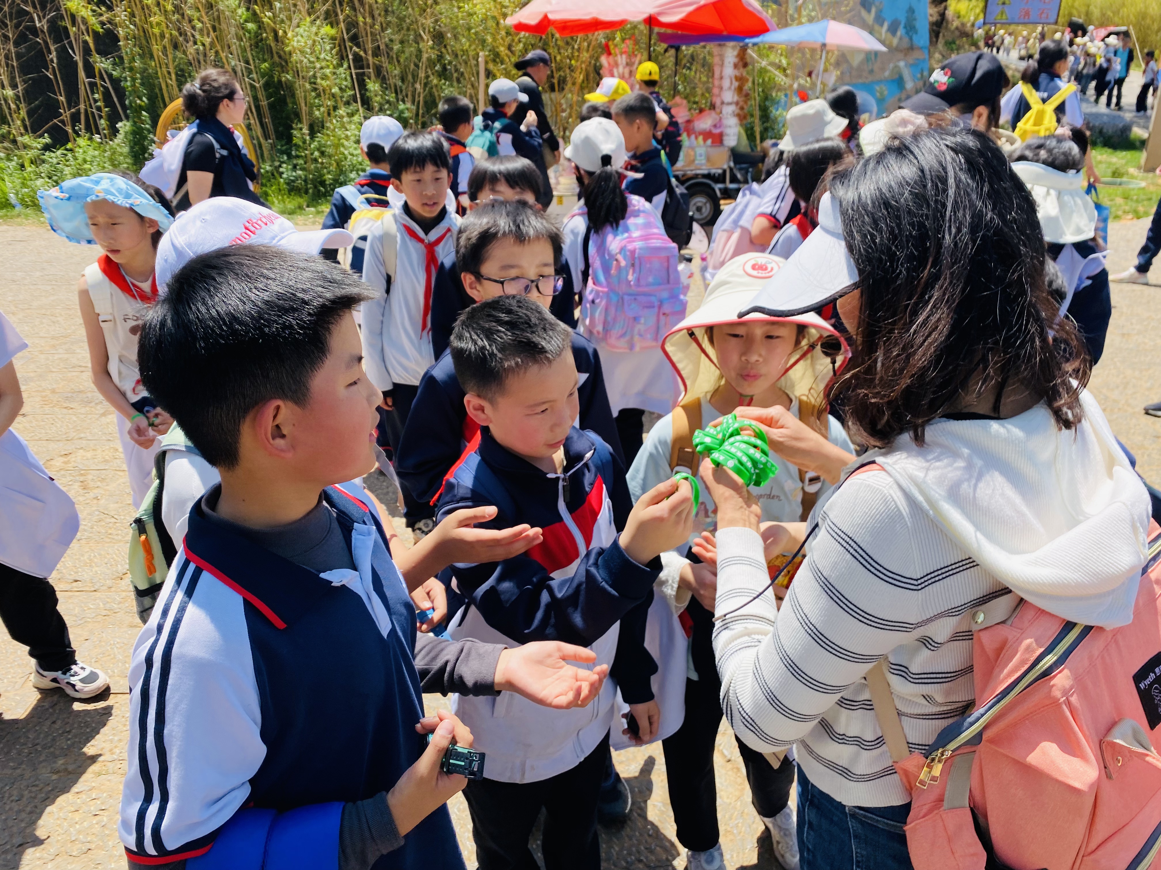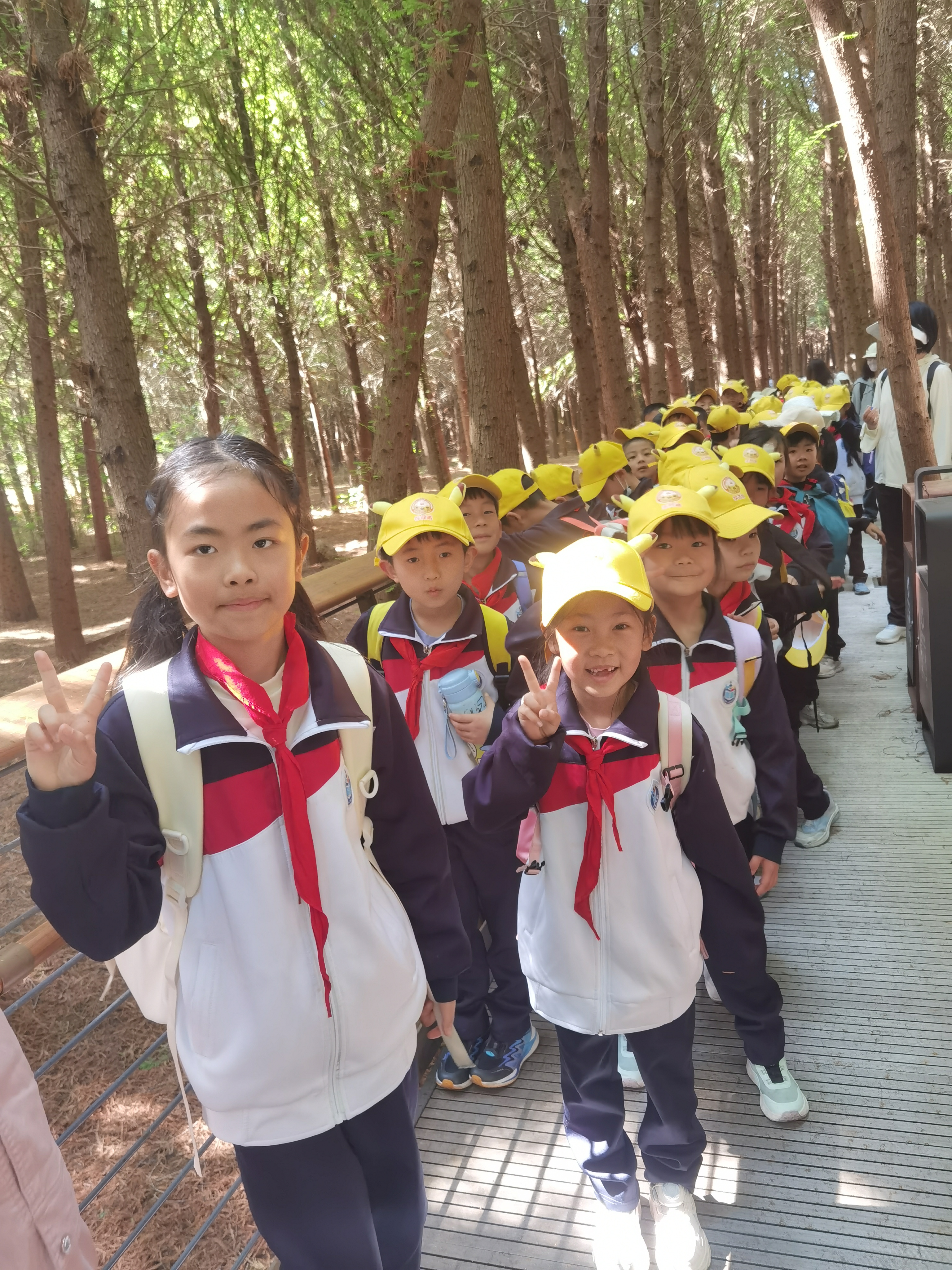 清晨,孩子们整装待发,在接受了全面的安全与环保教育后,以班级为单位有序出发,全程徒步。沿途春风拂面,绿意盎然,家乡的山水之美尽收眼底。