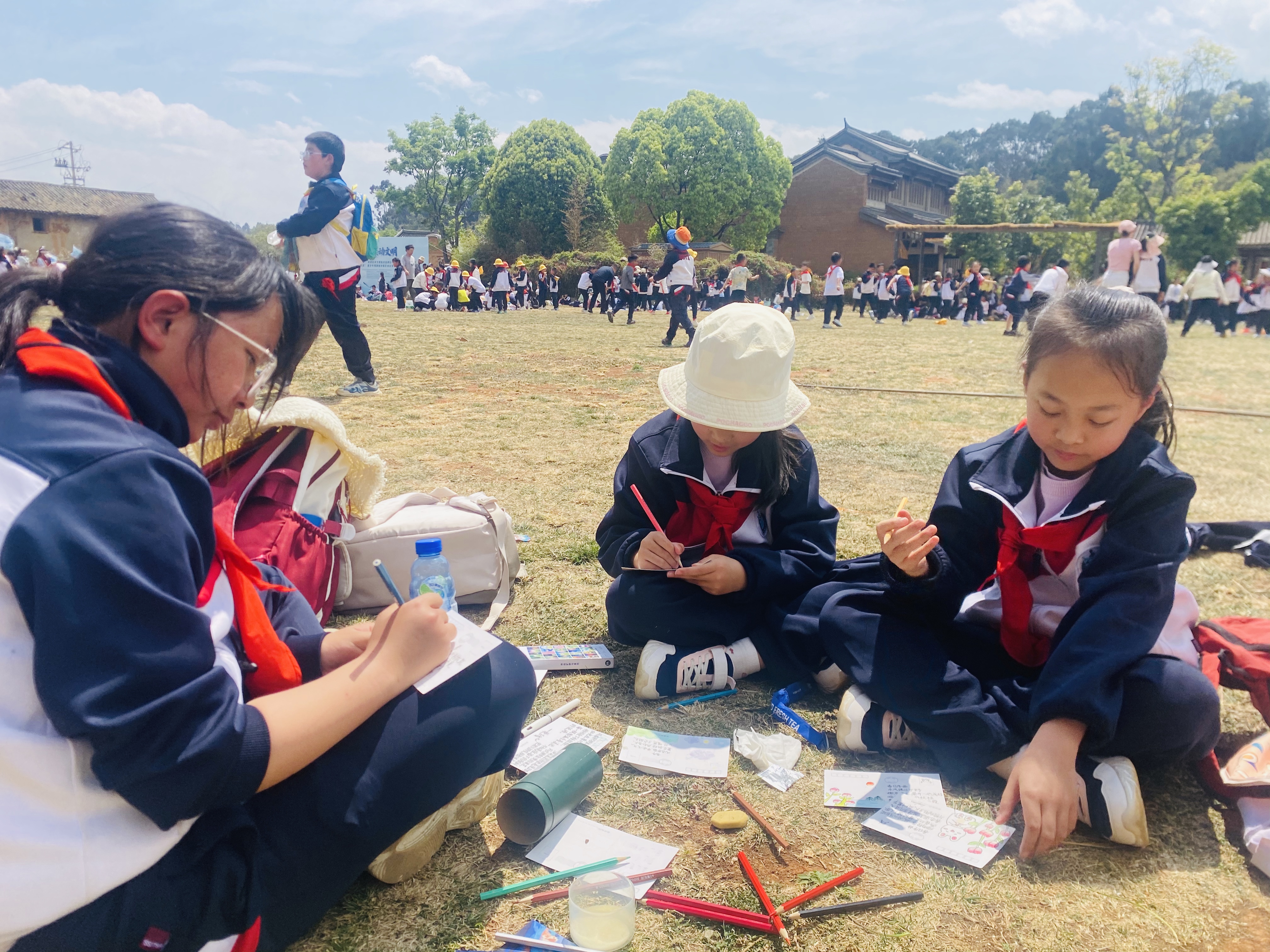 午餐后,各班开展了丰富多彩的专属春季实践活动。活动内容妙趣横生:有的班级用捡拾的落叶拼贴出春日画卷,有的班级在田间地头即兴写生,有的班级制作植物标本和自然观察日记,还有的班级拿起相机记录家乡春色,更有班级合作手绘生态长卷、创作春天的诗歌……孩子们在动手实践中感受春天的生机,在创作中加深对生态的理解,欢声笑语洒满了整个活动区域。