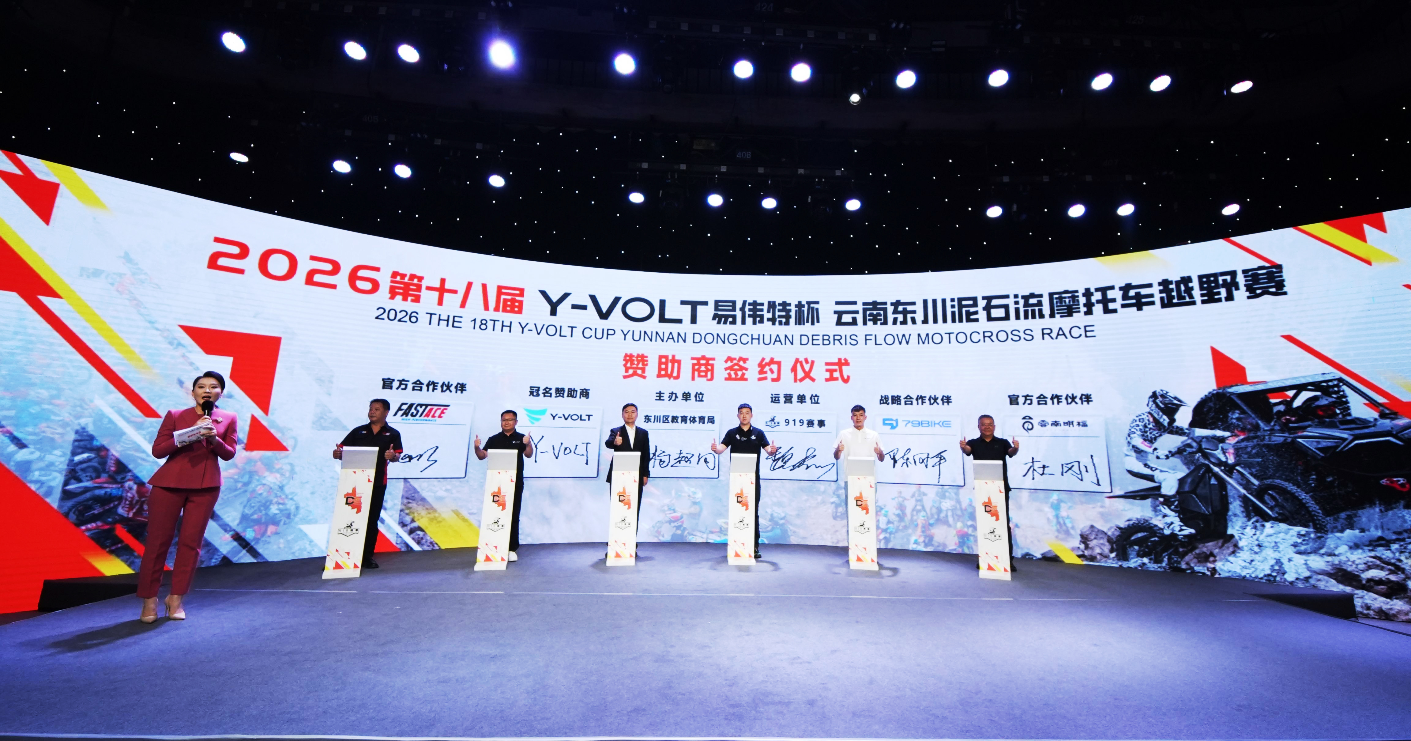 发布会上,Y-VOLT 易伟特、79BIKE、法斯特避震、云南明福等企业与赛事方完成现场赞助签约,各方将携手为赛事保驾护航,将以赛事为试验场,以赛促研、以赛验车,共同推动中国越野摩托车文化发展。